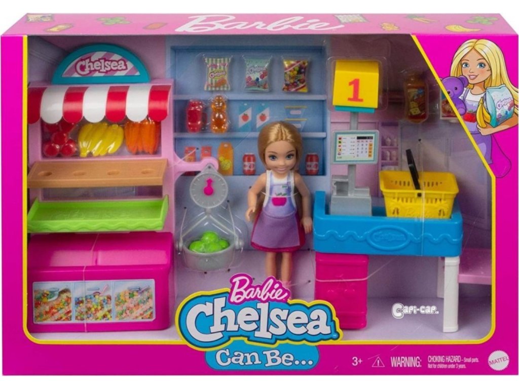Sada obsahuje bábiku Chelsea a viac ako 15 doplnkov vrátane nákupného košíka, veľkého pultu s občerstvením s ovocím, zeleninou a občerstvením a pokladne. Deti môžu dať zeleninu do váhy, „zvážiť“ ju a nakupovať ďalší tovar.
