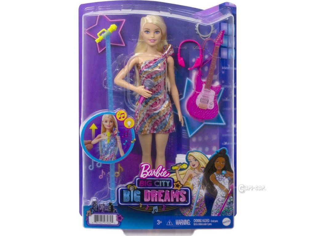 Vráťte sa s bábikou Barbie® Malibu v charakteristickom kostýme k pamätnému vystúpeniu z programu Barbie: Dreamhouse adventures™. Ste pripravení stať sa stredobodom pozornosti? Keď deti priložia bábike Barbie® k ústam mikrofón, spustí sa hudba, bábike sa rozsvietia šaty a „zaspieva“ jednu z dvoch autorských piesní. Keď bábike vráti ruku k telu, hudba bude aj naďalej hrať, ale bábika Barbie® prestane „spievať“, kým jej mikrofón opäť nezdvihnú. Deti vo veku od 3 rokov si môžu doplniť zbierku o bábiku Barbie® Brooklyn, získať tak úžasné duo umelkýň a prežiť si v hlave vlastné veľké dobrodružstvá! Bábika nemôže stáť sama. Farby a vzhľad sa môžu líšiť.