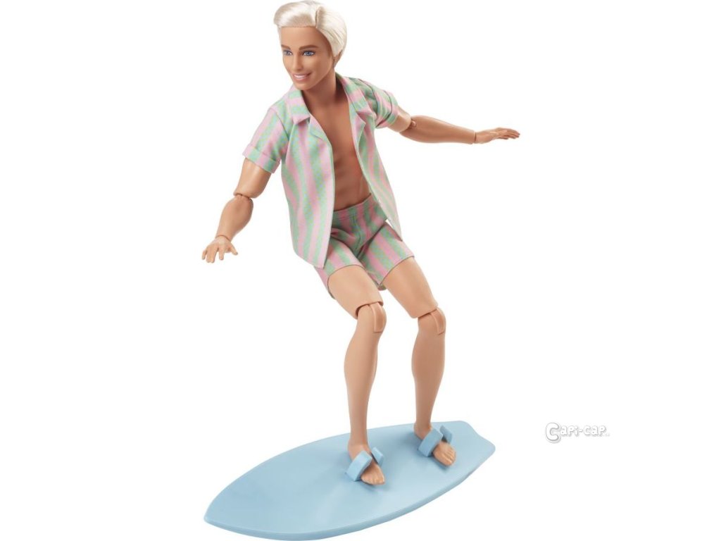 Tato sběratelská panenka Ken® v ikonickém filmovém outfitu se pyšní úžasnými módními kreacemi, které potěší všechny fanoušky. Panenka, inspirovaná postavou Kena v celovečerním filmu Barbie™, má na sobě ležérní surfařský obleček s pastelově růžovým a mátově zeleným pruhovaným topem a šortky s kapsami. Se svým surfem, platinově blond vlasy, rozepnutým topem a bílými teniskami vypadá stejně nenuceně jako filmový Ken® a je připraven prožít ten nejlepší den!