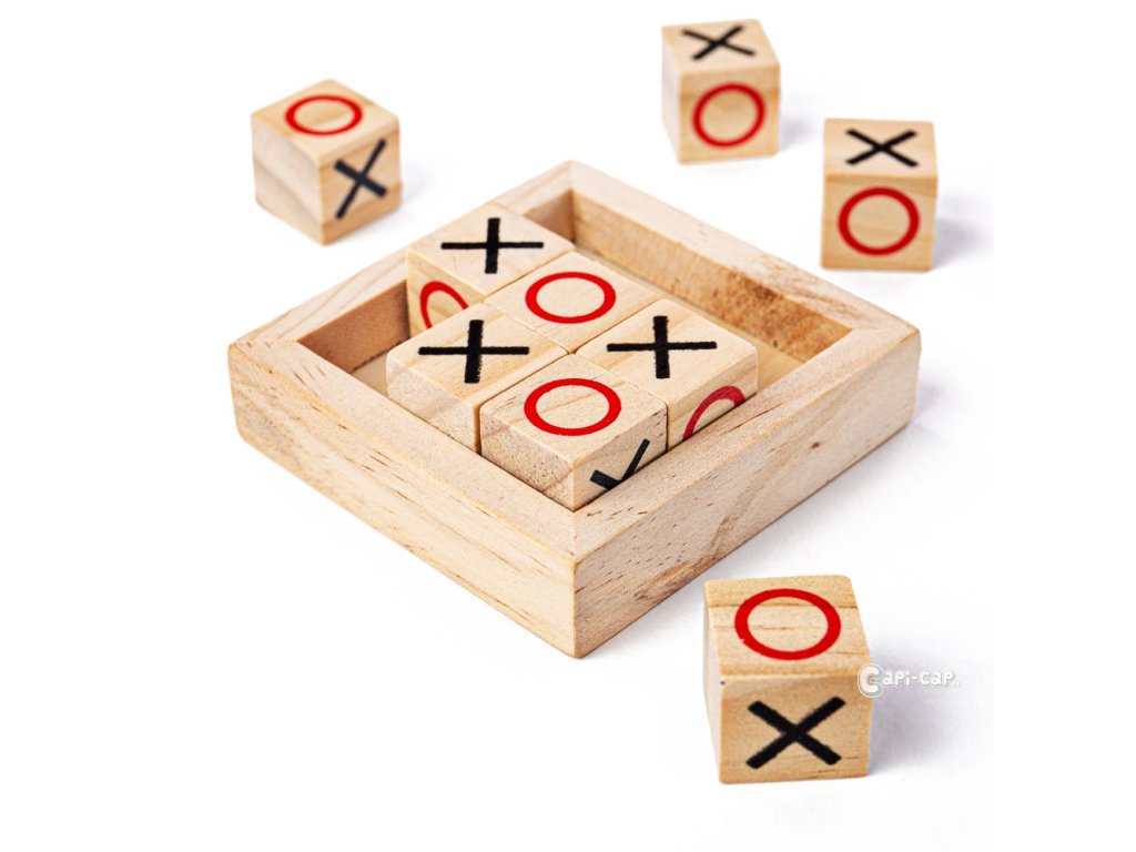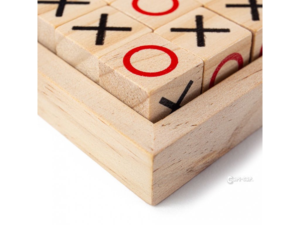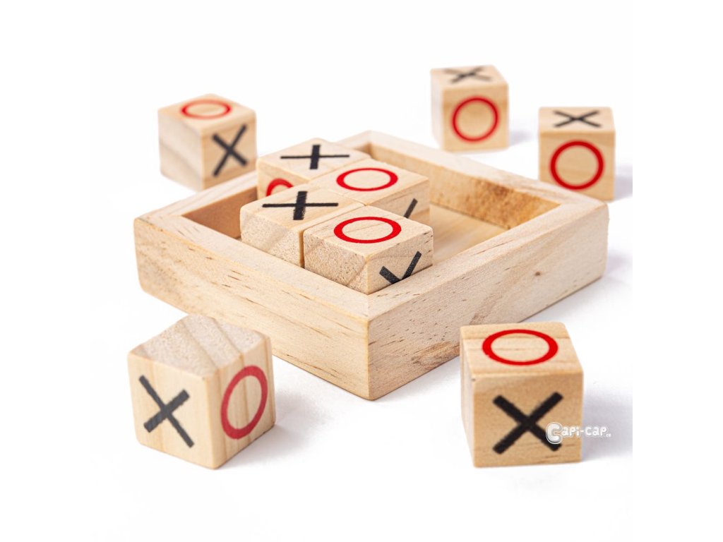 Hra obsahuje 9 kameňov. Cieľom hry je vytvoriť horizontálny, vertikálny alebo diagonálny rad z vašich kameňov. Toto musí byť vykonané na hernej doske, ktorá je zložená z 9 štvorcov. Víťazom je hráč, ktorý dokáže postaviť taký riadok ako prvý. Podporuje logiku a zaženie nudu. Vyrobené z kvalitných zodpovedne nakupovaných materiálov. Vyhovuje súčasným európskym bezpečnostným normám.