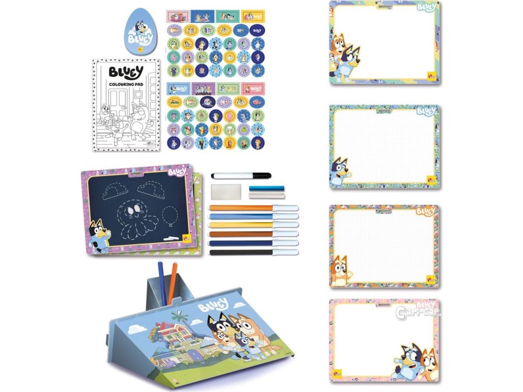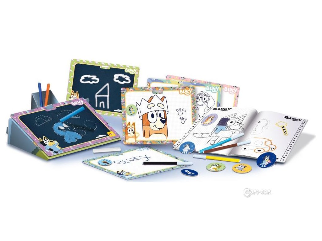 V roztomilém batohu od Bluey se nachází fantastická kreativní sada, která vám umožní krok za krokem se naučit kreslit ve společnosti postaviček z animovaného seriálu. Postupujte podle pokynů v brožuře a kreslete pohodlně na tabuli pomocí stavební desky. Uvnitř balení najdete také spoustu samolepek, fixů a barevných kříd.