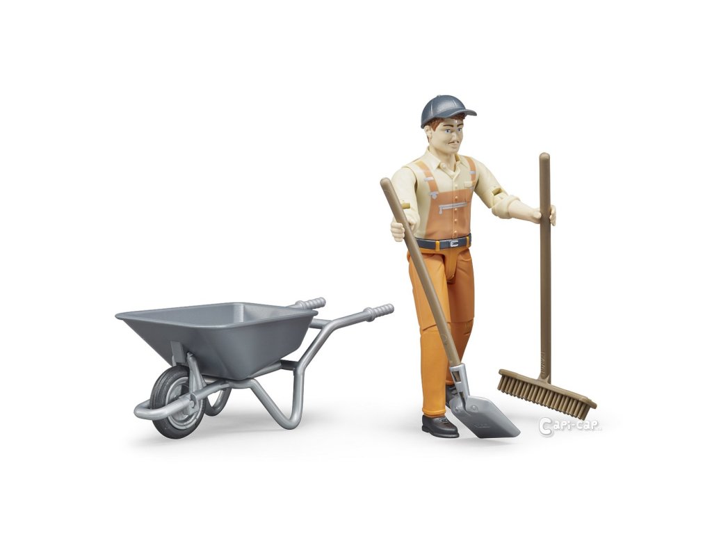 Úkoly komunálního pracovníka jsou složité. Zajišťuje staveniště a místa nehod, zkoumá poškození dopravních cest a přebírá menší staveniště. Odstraňuje nečistoty, udržuje zelené plochy a přebírá odklizovací a sypací službu. Postava bworld je ideálním doplňkem četných užitkových a stavebních vozidel řady BRUDER. Pohyblivá postava v montérkách s kolečkem, lopatou a koštětem nabízí mnoho možností pro zábavné scénky v dětském pokoji. Pohyb a funkce postavy: pohyblivé končetiny a hlava, ruce mohou uchopit předměty nebo se držet vozidel. Vyrobeno z vysoce kvalitních plastů. Vhodné pro hru doma i venku. Měřítko: 1:16. Věk: 4+Dodatočné parametre