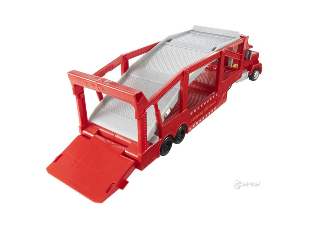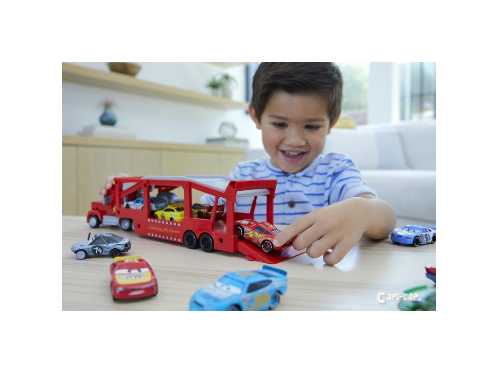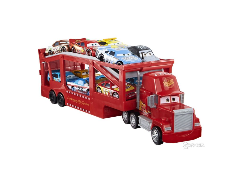 S vozidlom Disney a Pixar Cars Mack Hauler nezostane žiadny pretekár pozadu! Tento transportér je dlhý 32 cm a má miesto pre 12 áut (predávajú sa samostatne). Otvorte zadnú časť jeho nosiča na nakladanie a vykladanie; horná paluba sa zníži a slúži ako rampa pre ľahký prístup na palubu. Až budú všetci naložení, zatlačte, a dobrodružstvo môže začať! Vezmite celú partiu Cars na cestu s tranportérom Mack Hauler!