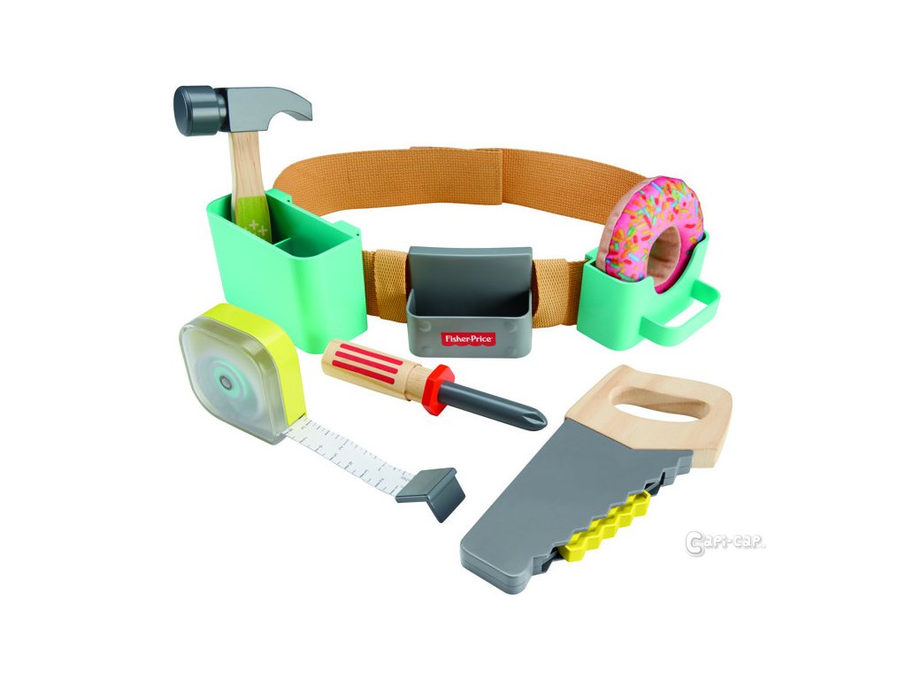 Váš malý staviteľ bude mať po dome dômyselné „opravovanie“ vecí so sadou rolí na náradí Fisher-Price® DIY Tool Belt. Textilný opasok na náradie má pohodlné úložné otvory pre všetky ich nástroje, vrátane predstieracieho kladiva, skrutkovača, chladnej píly, ktorá vydáva zvuky pri „rezaní“, a skutočne fungujúce, zaťahovacie meracie pásky. Dodáva sa dokonca s látkovým šiškom, ktorý odmení vášho predškoláka za dobre odvedenú prácu. Či už sa hráte v garáži alebo pracujete na projekte zlepšenia domácnosti, váš obľúbený asistent bude po vašom boku s vlastnými skvelými nástrojmi!
