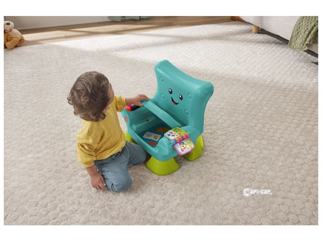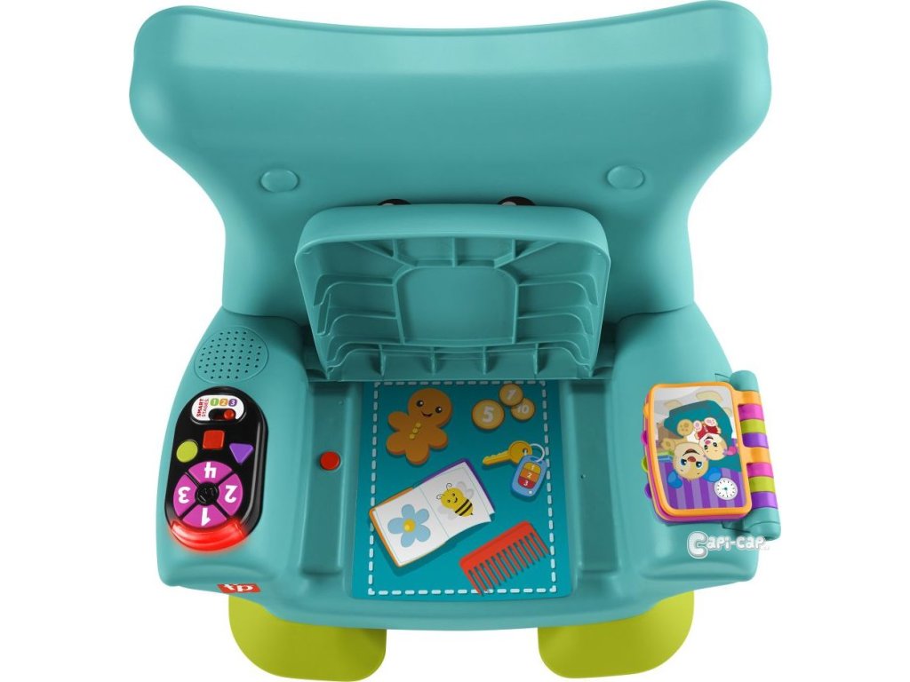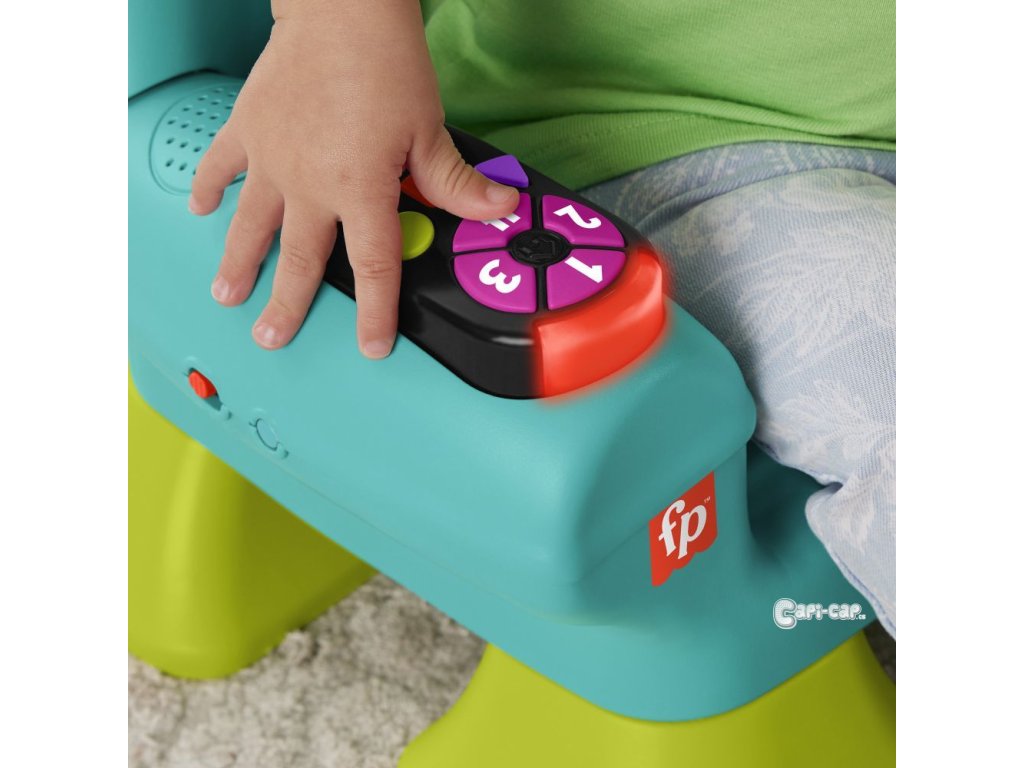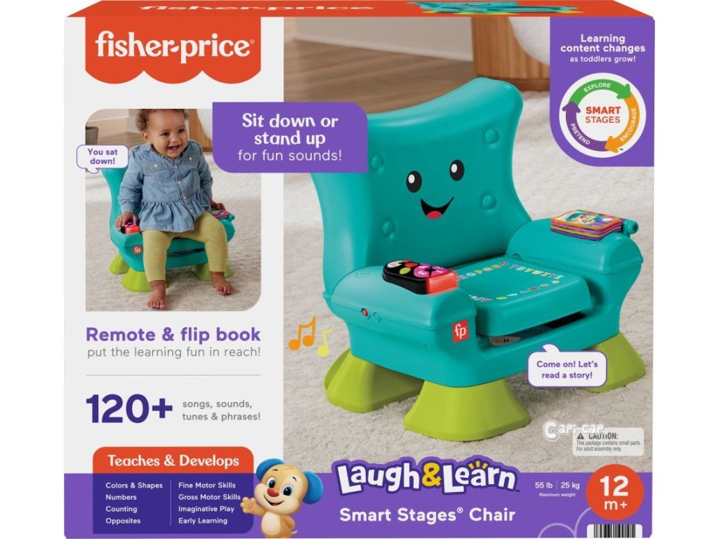 Křesílko Smart Stages™ od Fisher-Price® představuje pro vaše dítě útulné místo, kde si může hrát a objevovat svět. Interaktivní křesílko pozná, kdy si dítě sedne nebo vstane, a může na to reagovat zábavnými písničkami a frázemi! Jakmile se do něho děťátko posadí, čeká na něj spousta zábavných aktivit, včetně svítícího dálkového ovladače s tlačítky s čísly a tvary, listovací knížky a nadzvedávajícího polštářku se skrytými překvapeními. Tři úrovně učení Smart Stages™ obsahují více než 120 písniček, zvuků a frází, které dětem při hře představují barvy, tvary, čísla, počítání a protiklady.