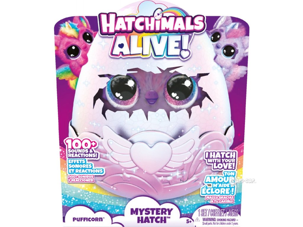 Blíží se něco magického. Je to Hatchimals Líhnoucí se interaktivní zvířátko, které potřebuje vaši lásku, aby se mohlo vylíhnout. Líhnutí Hatchimals je skutečně vzrušujícím zážitkem, doplněným o mlhu, světelné efekty a více než 100 zvuků a reakcí. Prostě je musíte mít! Kdo se vám vylíhne? Bude to překvapení! Uvnitř každého vajíčka Hatchimals Líhnoucí se interaktivní zvířátko se nachází 1 ze 2 postaviček. Podpořte svoji postavičku v líhnutí se na svět tím, že se s vajíčkem budete mazlit, ťukat na něj a zvedat a kolébat ho – vajíčko svítí a houpe se, a dokonce uslyšíte, jak vám váš Hatchimal zevnitř odpovídá. Až vajíčku dáte dostatek lásky, přijde čas na to svolat rodinu a přátele a připravit se na dokonalý zážitek z líhnutí. Objeví se magická mlha a vajíčko se rozzáří duhovými barvami – napětí roste. Po vylíhnutí vás bude váš nový kamarád inspirovat k hrám plným fantazie. Samou láskou si přiveďte k životu svou vlastní postavičku Hatchimal z řady Hatchimals Líhnoucí se interaktivní zvířátka. Obsahuje: 1 Hatchimals, 1 Hatchi-Wings, 1 stručný návod, 1 návod k použití, 4 baterie AA.