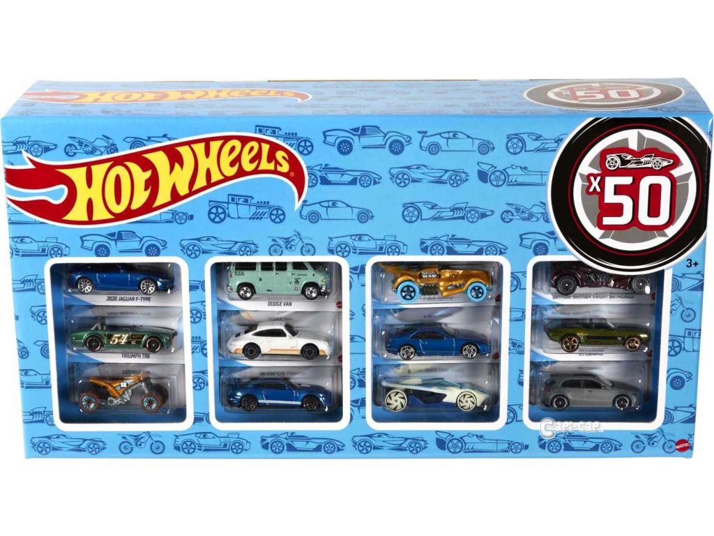Auta Hot Wheels® jsou skvělou odměnou za dobře odvedenou práci! Každé z 50 vozidel v této základní kolekci automobilů Hot Wheels® je jednotlivě zabaleno a vyznačuje se skvělým dekorem, což z něj dělá dokonalý materiál pro každou příležitost. Pro dárkové tašky, party laskavosti nebo jedno speciální dítě je tento balíček dokonalou startovací sadou a je dodáván se značkovým boxem Hot Wheels® pro snadnou přenosnost. Barvy a dekorace se mohou lišit.