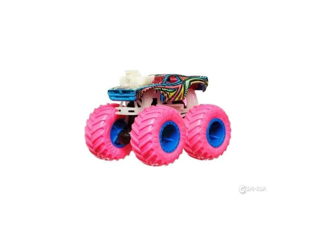 Tahle akce je ještě víc vzrušující, když zhasnou světla a Hot Wheels® Monster Trucks Svítící ve tmě se rozzáří!