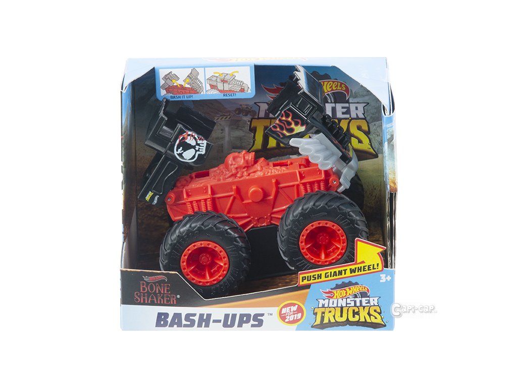 Rozdrť své protivníky s touto kolekcí monster trucků od Hot Wheels®! Všechny trucky jsou dodávána v měřítku 1:43 a samozřejmostí jsou typická OBŘÍ kola. Tyto monster trucky se neohroženě zakousnou svými gigantickými pneumatiky do bahna, které začnou rozstřikovat do všech stran! Monster trucky do sebe mohou všemi možnými způsoby narážet a bourat. A co by to bylo za zábavu bez pomačkaných plechů. Jakmile tvůj monster truck nabourá do svého protivníka nebo do překážky, odskočí mu „rozbité“ části karoserie. Nabourej, vrať vozidlo do původního stavu a znovu do akce! Na každém balení zároveň najdeš statistiku konkrétního vozidla včetně jména, typu vozu, výkonu, jedinečného způsobu útoku a motorizace.