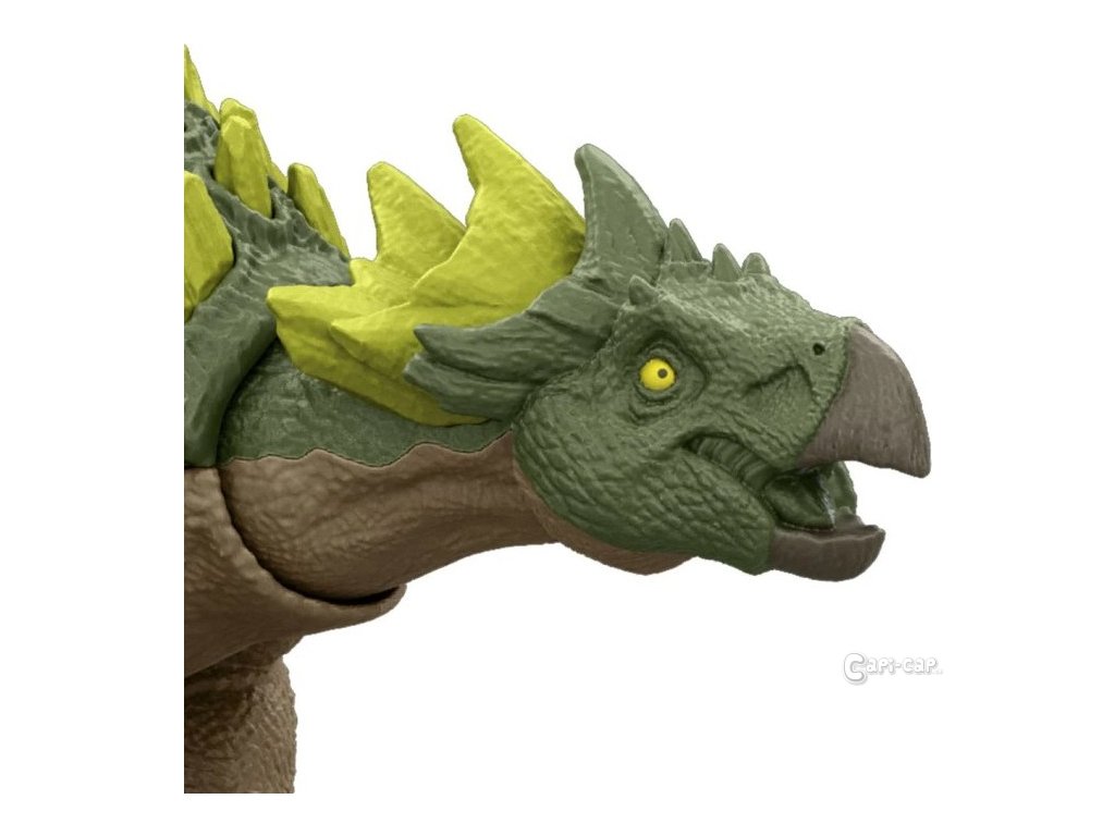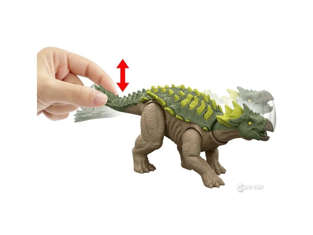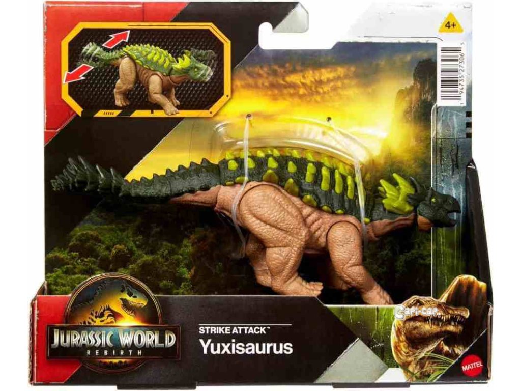 Tyto akční figurky dinosaurů z Jurského světa Dinosaurus útočí mají jeden úderný prvek, který demonstruje největší sílu každého druhu, pohyblivé klouby, realistické zpracování a autentické zdobení, a měří přibližně 10 až 13 cm na výšku a 18 až 20 cm na délku. Rozšířená digitální hra je k dispozici po naskenování jejich DNA tagu ve vylepšené aplikaci Jurassic World Facts.