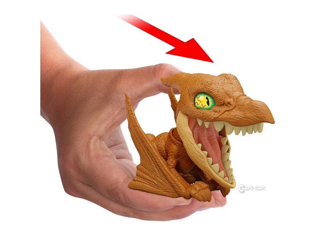 Každý dinosaurus Jurského světa Mighty Little Biters se změní z roztomilého na rozzlobeného jedním snadným pohybem. Stiskněte hlavu, abyste otevřeli tlamu a viděli, jak se horní zuby agresivně rozrůstají, zatímco oči se mění z roztomilého, normálního pohledu na děsivý útočný vzhled. Fanoušci budou mít skvělou zábavu při změně tam a zpět.