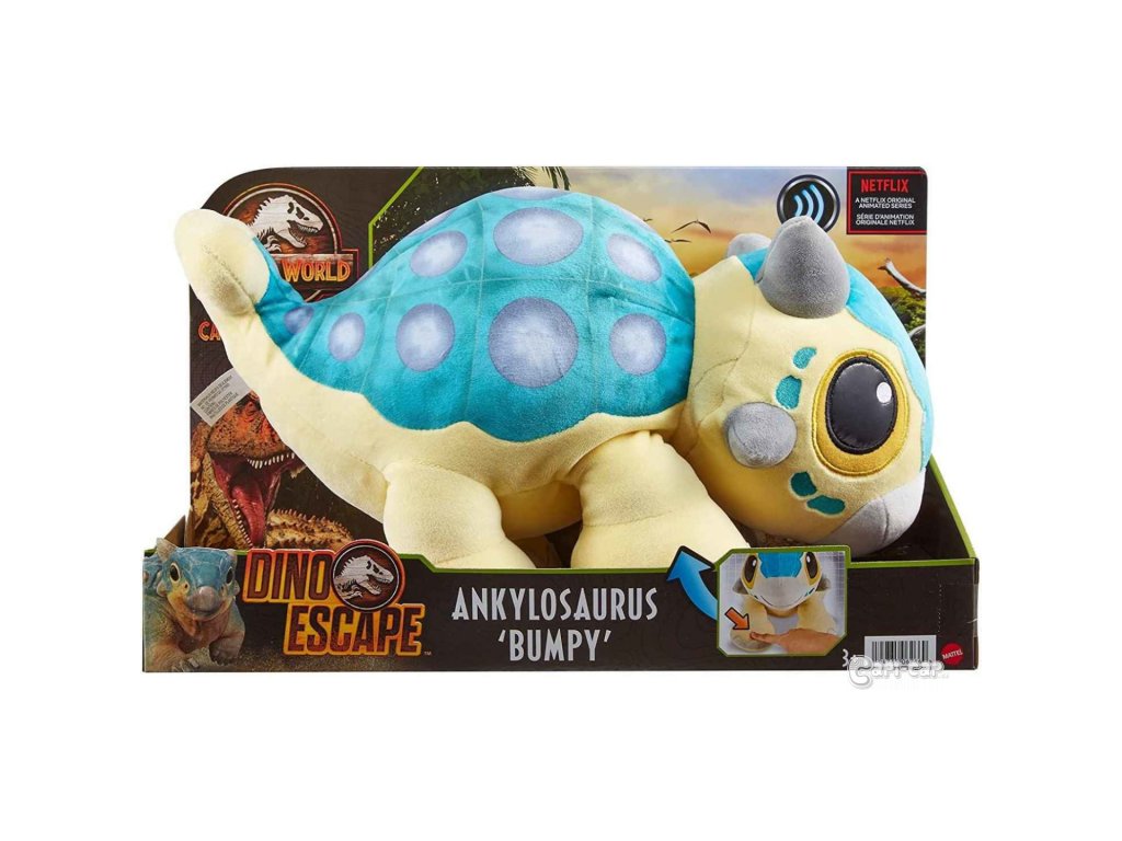 Tento plyšový dinosaurus je navrhnutý špeciálne pre fanúšikov Ankylosaura Bumpyho z Jurassic World: Kriedový kemp. Táto 38 cm dlhá plyšová hračka, vyrobená z mäkkej látky, ktorá sa ľahko ovláda, je ideálna pre maznanie pri zdriemnutí alebo pred spaním, jej špeciálny zvuk revu a poddajné nohy ju tiež pripravia na zábavu! Je to skvelý darček pre milovníkov dinosaurov vo veku od 3 rokov. Farby a dekorácie sa môžu líšiť.