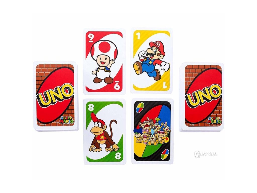 Pripojte sa k Mariovi, Luigimu a ich priateľom a vychutnajte si spoločne túto špeciálnu verziu kartovej hry UNO™! Vaša obľúbená kartová hra teraz prichádza v dizajne obľúbených postavičiek zo sveta populárnej video hry Super Mario Bros.
