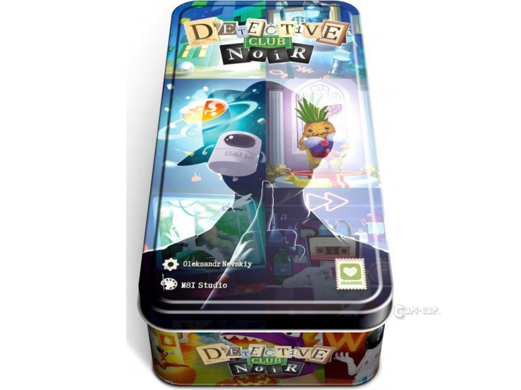 Noir je rozšírenie pre párty deduktívnu hru Klub detektívov, obsahujúci 84 nových kariet s krásnymi obrázkami. Rozšírenie nepridáva žiadne nové pravidlá. Hra obsahuje: 84 obrázkových kariet, 7 bločkov a 1 ceruzku. UPOZORNENIE: Krabica hry Klub detektívov: Noir je vo francúzštine, avšak komponenty vo vnútri neobsahujú žiadne texty ani dodatočné pravidlá, takže nijako nebránia porozumeniu.