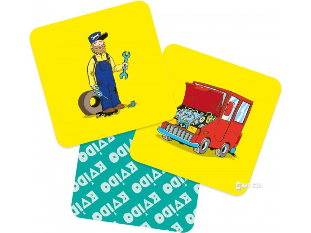 Netradičné pexeso chobotničky Kvído, kde deti hľadajú a spájajú 2 významovo spoločné veci - hádanku a obrázok, ktorý je odpoveďou na ňu.