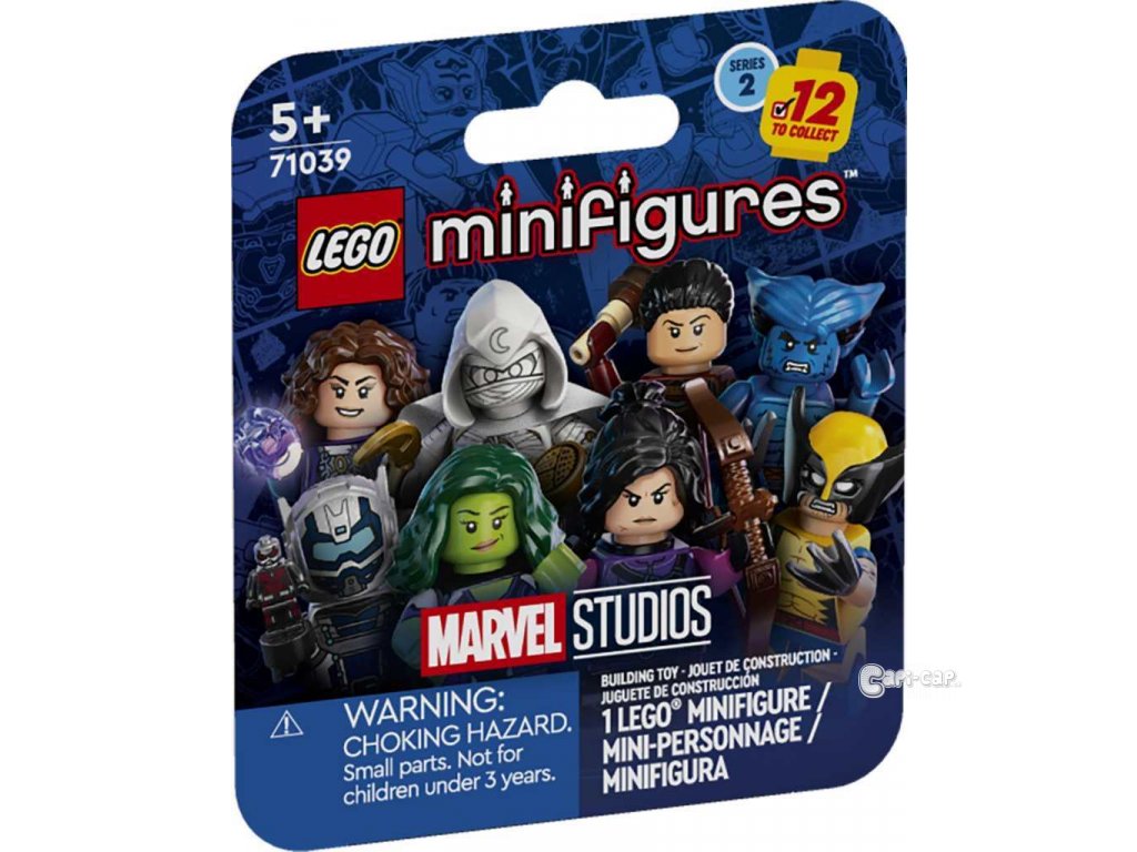 Malí stavitelé budou s nadšením otevírat balíčky z udržitelného materiálu, které ukrývají postavy ze světa Marvel. V sadě je celkem 12 jedinečných postav: Agatha Harkness, Kate Bishop, Hawkeye, Moon Knight, pan Knight, She-Hulk, Werewolf, Goliath, Storm, Beast, Wolverine a Echo.