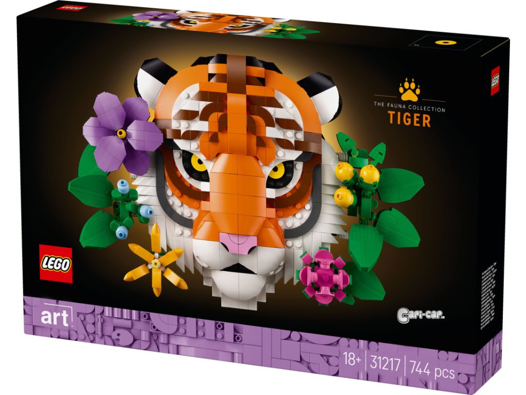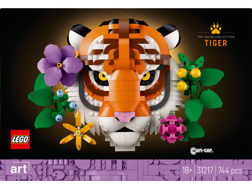Vneste do svého domova nádherné barvy a přírodu s jedinečnou stavebnicí LEGO® Art (31217) Kolekce zvířat – Tygr pro dospělé. Model představuje ideální dárek ke kolaudaci nového domova a milovníci zvířat a umění si s sním sestaví bezrámečkové 3D umělecké dílo. Tato dekorace s motivem divokého zvířete znázorňuje krásného tygra, který vykukuje zpoza dekorativních květin a rostlin. Pověste si model na zeď nebo ho vystavte na psacím stole nebo na polici díky vestavěnému stojanu. Všechny květiny jsou přizpůsobitelné a lze je přesouvat na různá místa – nebo můžete přidat další květiny z kostek ze stavebnic z kolekce LEGO Botanicals (prodávají se samostatně). Tato stavebnice LEGO představuje obohacující projekt pro dospělé, se kterým si vytvoří vlastní nepřehlédnutelné kreativní mistrovské dílo z kostek. Další stavebnice z řady LEGO Art potěší milovníky klasického umění, pop-artu, interiérového designu, historie a dekorací.