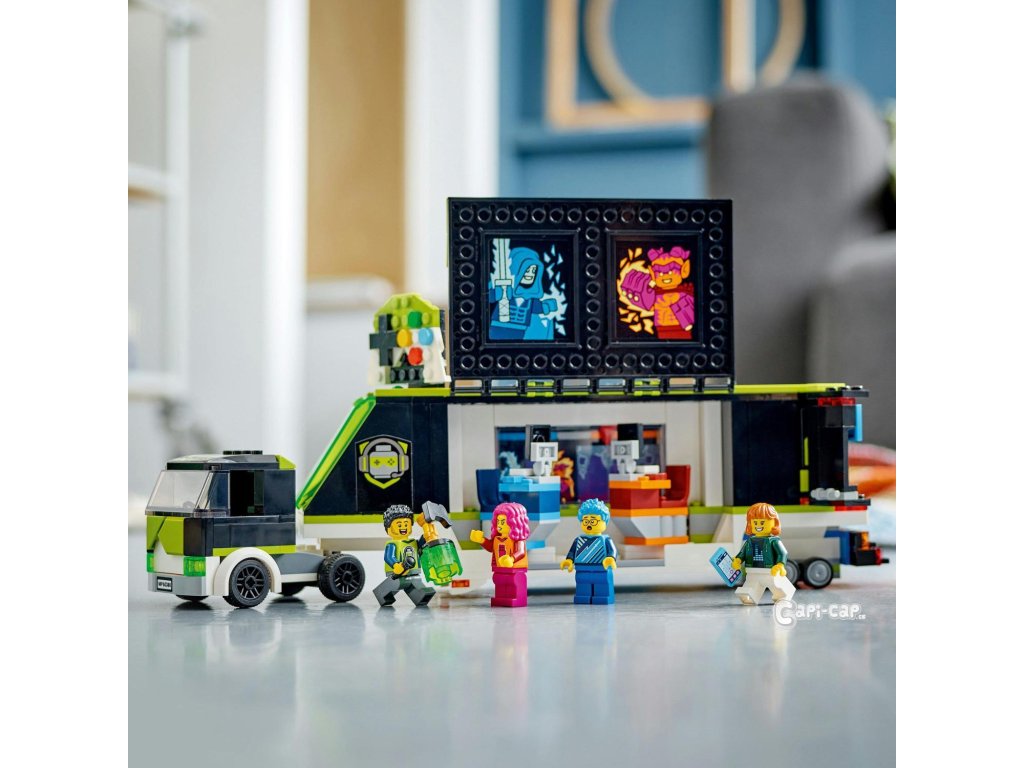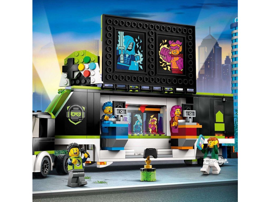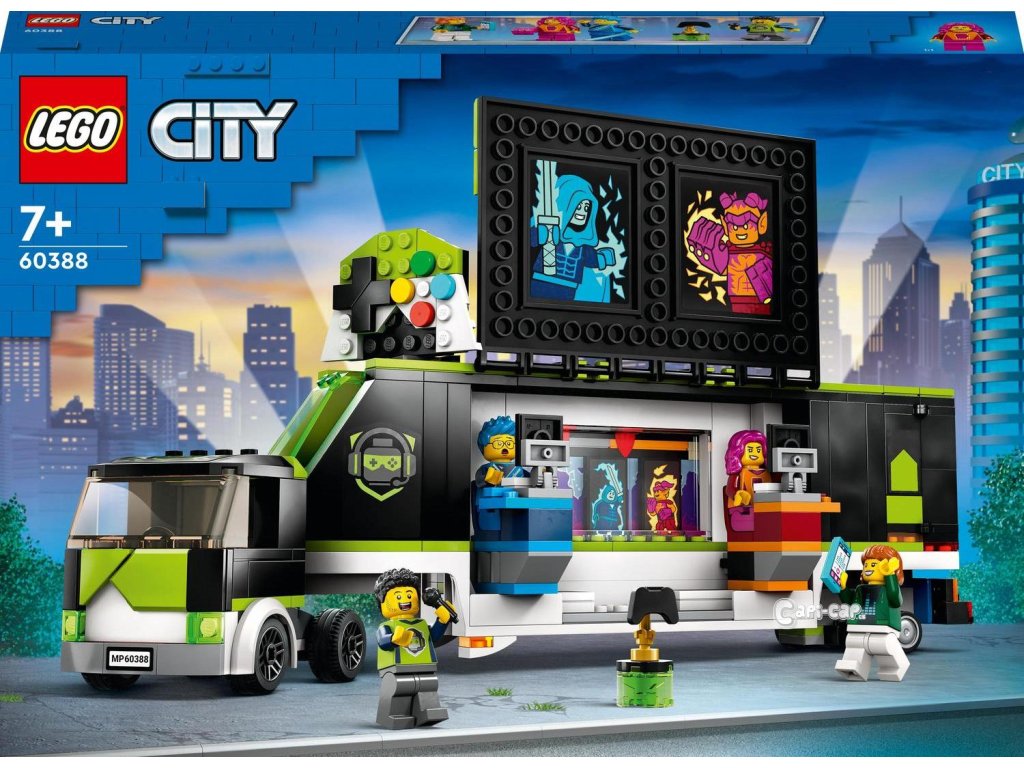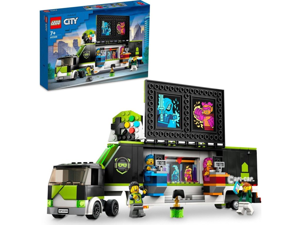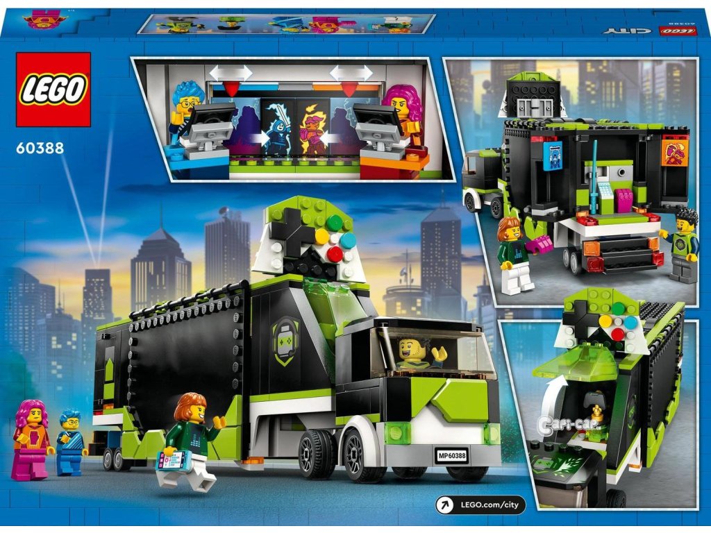 • Model z prostredia herného turnaja – Stavebnica Herný turnaj v kamióne (60388) od LEGO® City doslova prekypuje vybavením pre imaginárne herné klanie • Čo sa ukrýva v krabici? – Všetko, čo deti potrebujú na zostavenie kamiónu a herného turnaja, vrátane pódia, 2 herných staníc a veľkoplošnej obrazovky. Chýbať nesmie ani trofej pre víťazov, tovar pre fanúšikov a 3 minifigúrky • Zábavné funkcie rozširujú herné možnosti – Deti môžu animovať zábery z hier na veľkoplošnej obrazovke a upravovať lištu zobrazujúcu postup v hre, aby boli súperiace minifigúrky poriadne motivované • Darček pre každú darček k narodeninám, Vianociam alebo akékoľvek iné príležitosti pre deti od 7 rokov • Rozmery – Model Herný turnaj v kamióne od LEGO® City meria cez 13 cm na výšku, 33 cm na dĺžku a 6 cm na šírku • Doplnky pre minifigúrky – Medzi doplnkami LEGO ® v tejto stavebnici patrí trofej pre víťazov, mikrofón, mobilný telefón a herné predmety, vrátane veľkých pästí a meča • Ešte viac zábavy s digitálnym návodom na stavanie – Vďaka aplikácii LEGO® Builder s návodmi pre chytré telefóny a tablety si deti môžu model približovať, otáčať a prezerať zo všetkých uhlov • Učenie hrou – Stavebnice LEGO® City pomáhajú deťom rozvíjať sebavedomie a kľúčové zručnosti pre život otvoreným, nápaditým hraním • Istota kvality – Všetky kocky LEGO® spĺňajú nekompromisné odborové štandardy, vďaka čomu sú dieliky konzistentné, kompatibilné a zaručujú zábavné hranie. • Bezpečnosť na prvom mieste – Kocky a dieliky LEGO® púšťame na zem, zahrievame, drvíme, krútime a analyzujeme, aby sme zaistili, že bezpečnostné štandardy