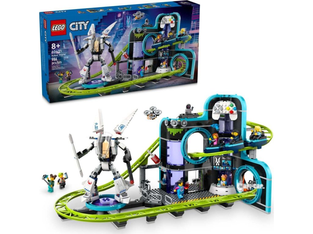 „Malí fanoušci videoher a zábavních parků si zamilují tento funkční model horské dráhy. Dobrodružná stavebnice LEGO® City (60421) Zábavní park Robotický svět je plná detailů, které stavitele inspirují k hodinám nápaditého hraní. Děti s vlakem se třemi vozíky prosviští futuristickým prostředím s motivem videoher, ve kterém najdou hernu s konzolemi, arénu na e-sporty, bar s ledovou tříští a spoustu dalších detailů. Součástí stavebnice je také pohyblivý robotický oblek a 8 minifigurek pro hraní na postavy a vyprávění příběhů. Součástí této kreativní stavebnice je podrobný tištěný návod na stavění a 3D pokyny v aplikaci LEGO Builder, což je digitální průvodce stavěním s intuitivními nástroji přibližování a otáčení. Umožní jim prohlížet si modely ze všech úhlů, zatímco na nich pracují. Ve stavebnicích z řady LEGO City na vás čekají parádní vozidla, realistické modely a zábavné postavy, které inspirují hraní bez hranic. Děti mohou tuto stavebnici LEGO City kombinovat s dalšími sadami z řady LEGO City (prodávají se samostatně) a rozšířit si tak svět herních možností.“
