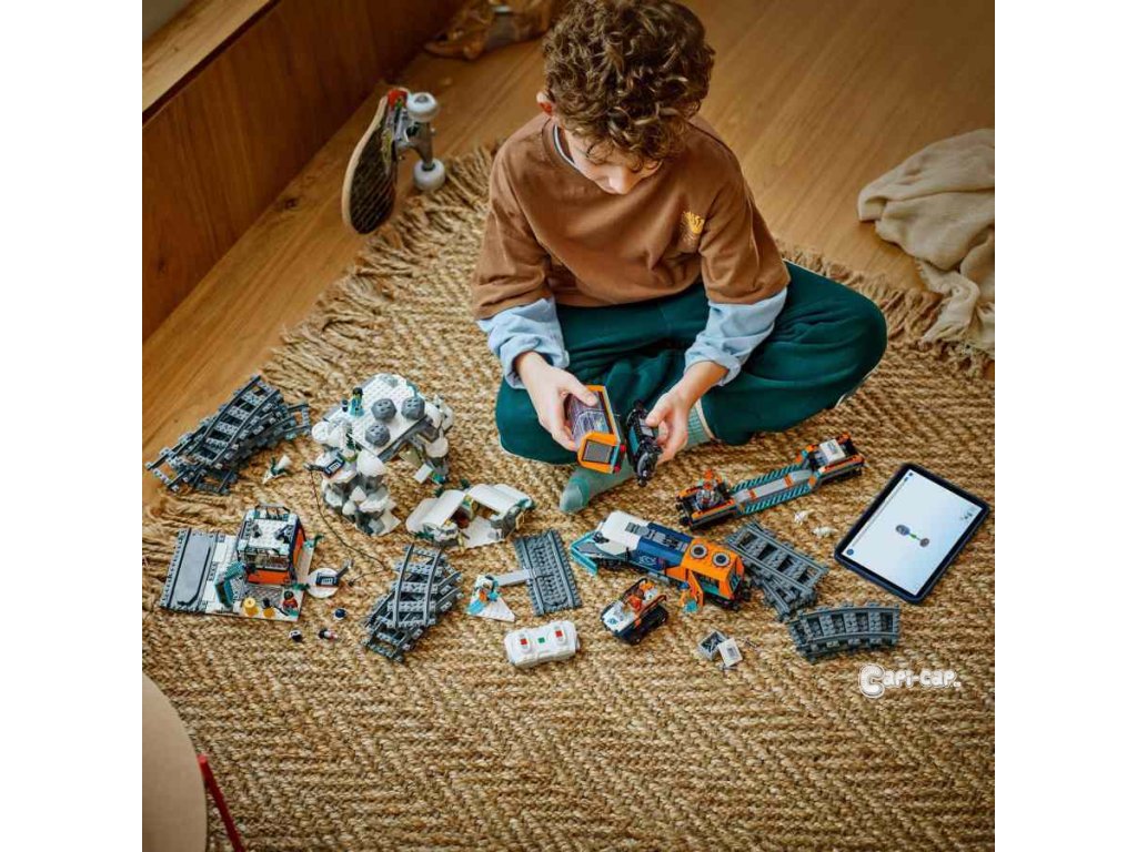 Potěšte fanouška STEM hraček stavebnicí LEGO® (60470) Polární expres pro průzkumníky Arktidy. Tato prémiová stavebnice pro děti od 7 let obsahuje dálkově ovládanou lokomotivu LEGO se sněžným pluhem, panoramatický osobní vagón, valník a sněžný traktor. Děti si užijí zábavu s 22 dílky vlakových kolejí, horským tunelem s padajícími kameny, základnou a důlní jeskyní. Přidejte minifigurky Johnnyho Thundera a 5 průzkumníků, 2 figurky polárních lišek a dobrodružství může začít. Tento model vláčku obsahuje tištěný návod na stavění a digitální návod na stavění v aplikaci LEGO Builder. Děti si v ní můžou přibližovat a otáčet modely ve 3D, ukládat stavebnice a sledovat svůj postup při stavění. Stavebnice LEGO City obsahují parádní vozidla, realistické stavby a zábavné postavy, které inspirují ke kreativnímu hraní. Děti můžou tuto stavebnici LEGO City zkombinovat s dalšími kreativními hračkami z řady LEGO City (prodávají se samostatně) a rozšířit tak svět herních možností. Stavebnice obsahuje 1517 dílků.