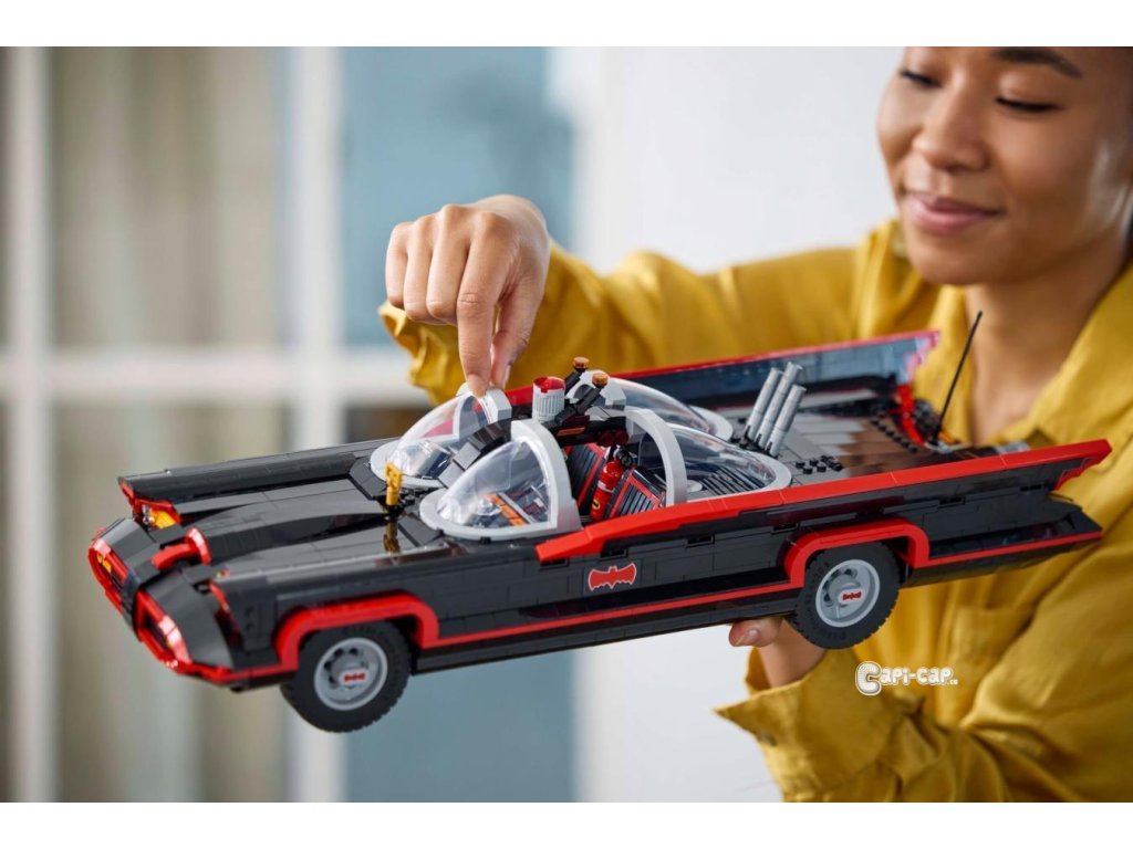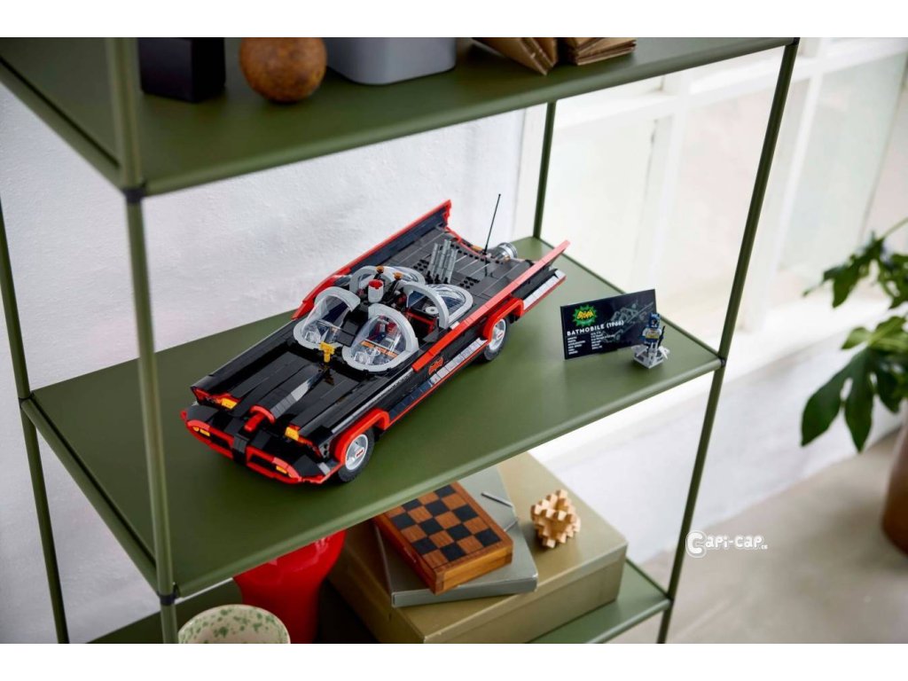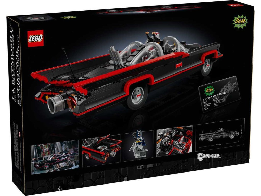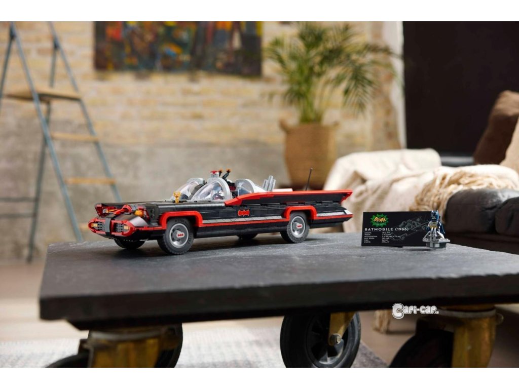 Tento poutavý sběratelský kousek DC Super Heroes™ je inspirován slavným Batmobilem z televizního seriálu z roku 1966. Vozidlo má tvarované čelní sklo, otočná kola, autentické dekorace a otevírací kufr s Batpočítačem. Minifigurka Batmana ve stylu roku 1966 na sobě má svůj charakteristický plášť a kápi, drží Batarang™ a stojí na plošině (minifigurka se do auta nevejde). Aplikace LEGO Builder obsahuje digitální verzi návodu na stavění, který je součástí stavebnice.