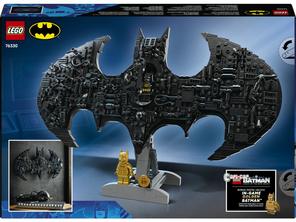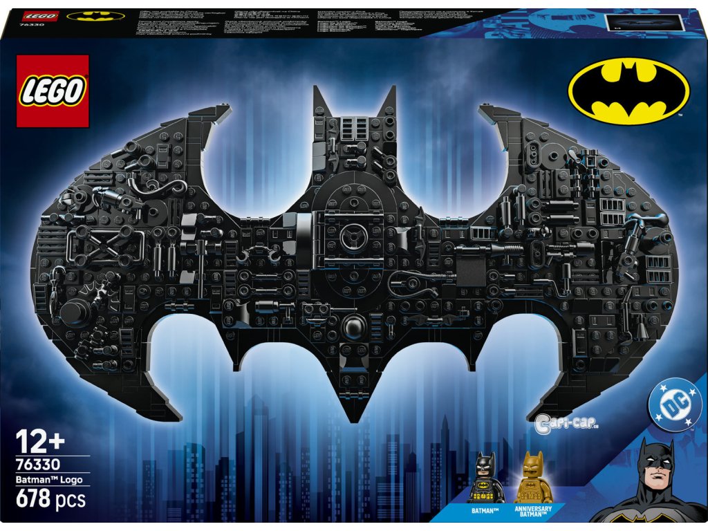 Vyšlete Bat-Signál se stavebnicí LEGO® DC Batman™: Logo Batman™ (76330), která poslouží jako úžasný dárek pro kluky a holky od 12 let. Na oslavu 20 let řady LEGO DC Batman je tento sběratelský kousek vybaven ikonickým symbolem, 2 minifigurkami a celou řadou doplňků. Signál Batmana lze vystavit na podstavci nebo připevnit na zeď pomocí integrované podpěry. Model je zdoben známými předměty ze světa DC, které lze odnímat a přemísťovat, včetně Batarangů a kladiva Harley Quinn™. Stavebnice obsahuje zlatou minifigurku Batmana a zlatou výroční minci. Nechybí tradiční minifigurka Batmana, kterou lze umístit do otevíracího poklopu uprostřed modelu, který vypadá jako dveře trezoru na obleky v Batmanově jeskyni. Stavebnice obsahuje 678 dílků. Bonus: Odemkněte digitálně: Získejte zlatou postavu, za kterou můžete hrát ve videohře LEGO Batman - Legacy of the Dark Knight™. Naskenujte QR kód v návodu na stavění a postupujte podle pokynů.