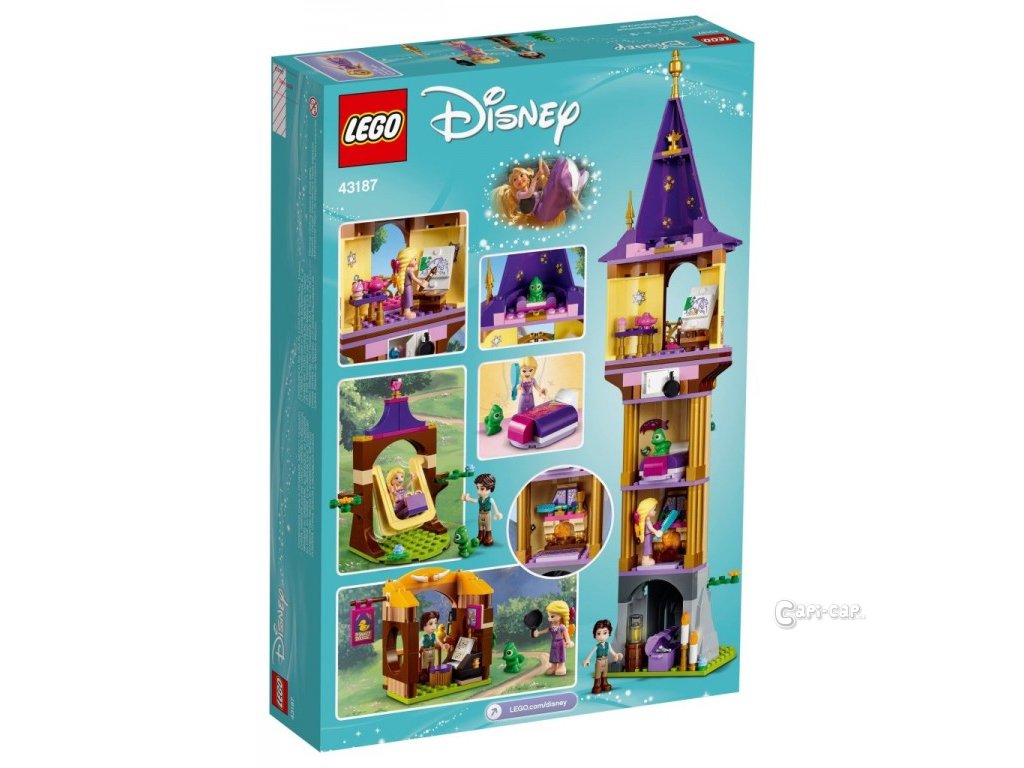 Detailný model veže má celkom 4 miestnosti - kreatívnu dielňu, spálňu, útulnú obývaciu izbu a jaskyňu s tajnými dverami. Súprava navyše obsahuje 2 menšie modely pre ešte väčšiu porciu kreatívneho otvoreného hrania – hojdačku z vlasových krčiem a krčmu, v ktorej nechýba posedenie a piano.