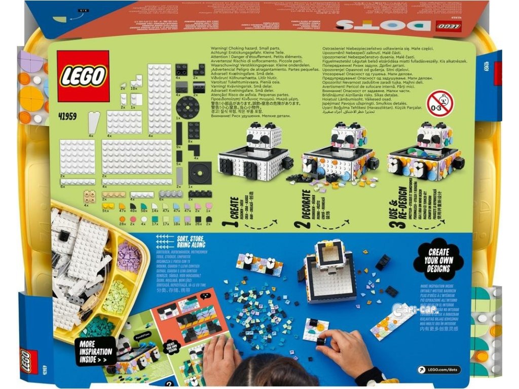 Viete o malom kutilovi a milovníkovi pánd od 6 rokov? Stavebnica Roztomilá pandia priehradka (41959) od LEGO® DOTS vyhovuje obom týmto záujmom! Kreatívny model nadchne veľkou spodnou priehradkou, ktorá tvorí telo, a menším horným boxom v podobe hlavy, ktorý je možné otvoriť a otáčať. Do oboch častí si možno ukladať veľké alebo malé cennosti. Zostavenie je ľahké a intuitívne, takže si deti môžu navrhnúť vlastnú pandiu priehradku a prispôsobiť si ju úplne k obrazu svojmu tak, aby im ladila s výzdobou v izbe či náladou. Tvorivá stavebnica pre malých domácich majstrov Rad DOTS deti uvedie do sveta kreatívnych stavebníc LEGO, v ktorom môžu vytvárať a dozdobovať rôzne modely. S touto rozkošnou a praktickou panďou priehradkou nie je nič nemožné – kľúčom k úspechu je detská predstavivosť. Stavebnice DOTS sú doslova nabité možnosťami, ktoré kreatívne deti inšpirujú k nápaditému hraniu.