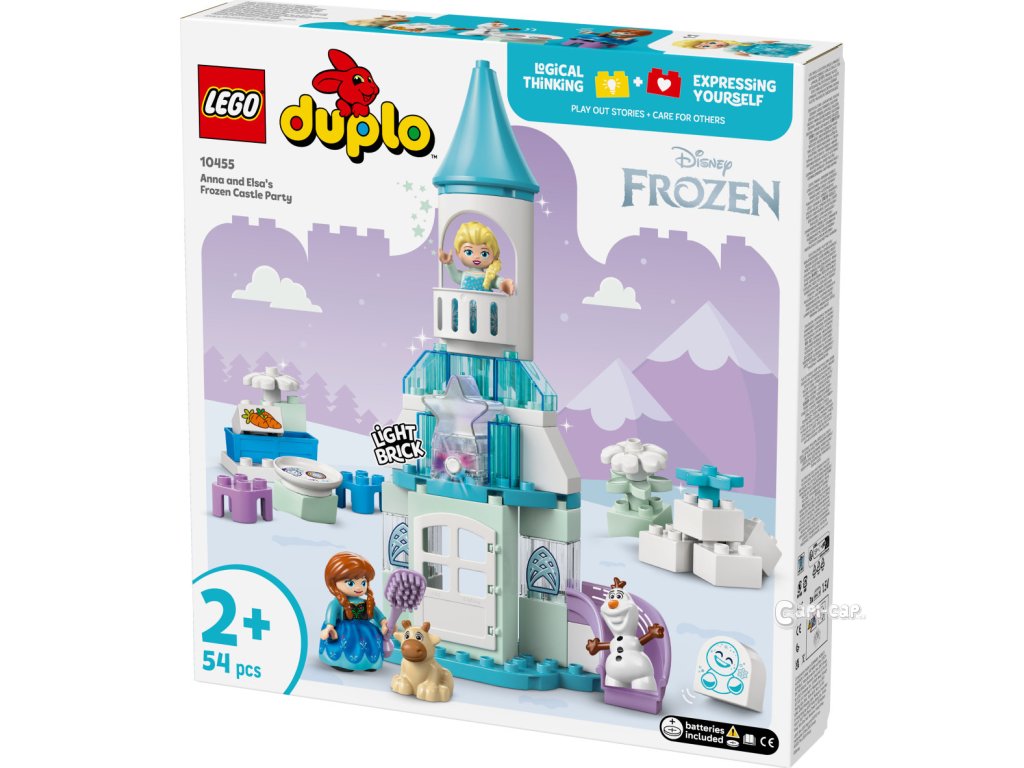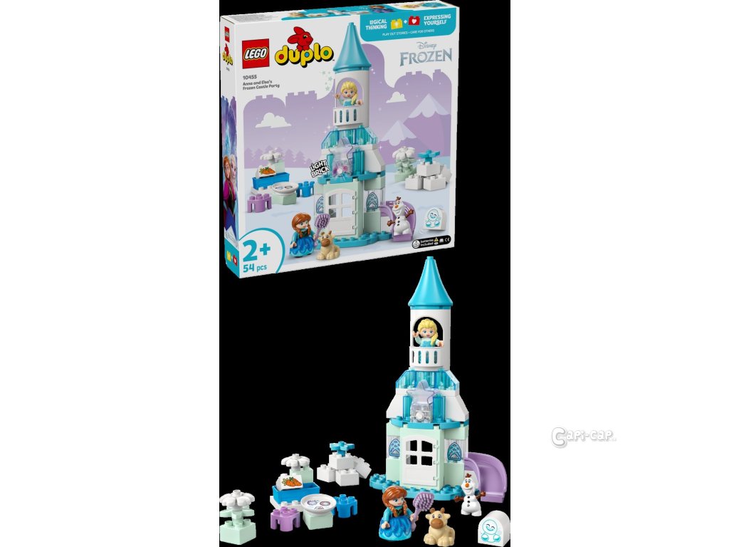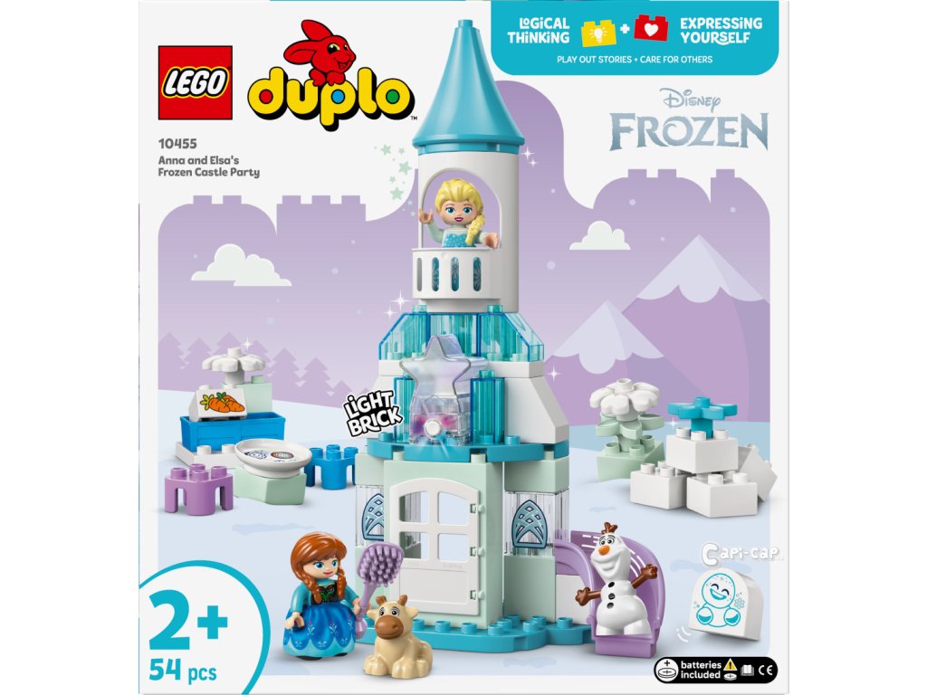 Ponořte se se svými ratolestmi do světa kreativního hraní se stavebnicí LEGO® DUPLO® │ Disney (10455) Ledové království: Anna a Elsa a oslava na hradě pro batolata. Součástí jsou postavy LEGO DUPLO │ Disney Elsy, Anny, sněhuláčka Marshmallowa, malého Svena a Olafa, se kterými si děti užijí nekonečné možnosti hraní na život na hradě a péči o malého Svena. Při stavění modelu hradu si malé děti procvičí jemnou motoriku. Tato fantasy stavebnice obsahuje doplňky, které malé děti i dospělé inspirují k zábavnému hraní na péči o mládě soba, při kterém zapojí fantazii. Tato vzdělávací stavebnice pro malé děti se pyšní řadou detailů, které stimulují jejich smysly. Elsa a Anna mají oblečené látkové sukně, které jsou příjemné na dotek. Najdete tu i výklopné dveře, které mohou malé prstíky otevřít a prozkoumat tak interiér hradu z filmu Ledové království. Stavebnice obsahuje také barevnou světelnou kostku, která představuje polární záři. Součástí stavebnice je 54 dílků.