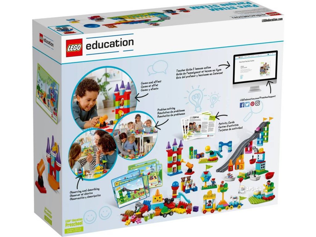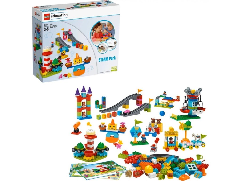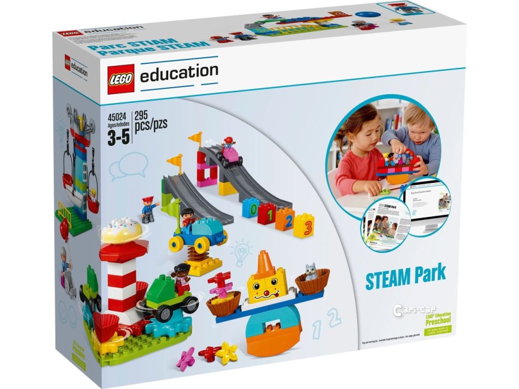 LEGO® Education 45024 DUPLO® STEAM Park je unikátní sadou pro maximální rozvoj vašeho malého stavitele. Díky všemožným druhům kostek a funkcí se při budování a návštěvě parku plného atrakcí a zábavy, snadno porozumí principům pohybu, rovnováhy a převodů, zdokonalí si prostorovou orientaci, získají dovednosti pro odhad a jednoduchá měření, seznámí se s pravděpodobností, pravidly příčiny a následku, naučí se řešit problémy z reálného světa, sdílet myšlenky a prezentovat výsledky vlastní práce. Balení kromě 295 kostek obsahuje také 8 oboustranných karet pro inspiraci. Vhodné od 3 do 5 let.