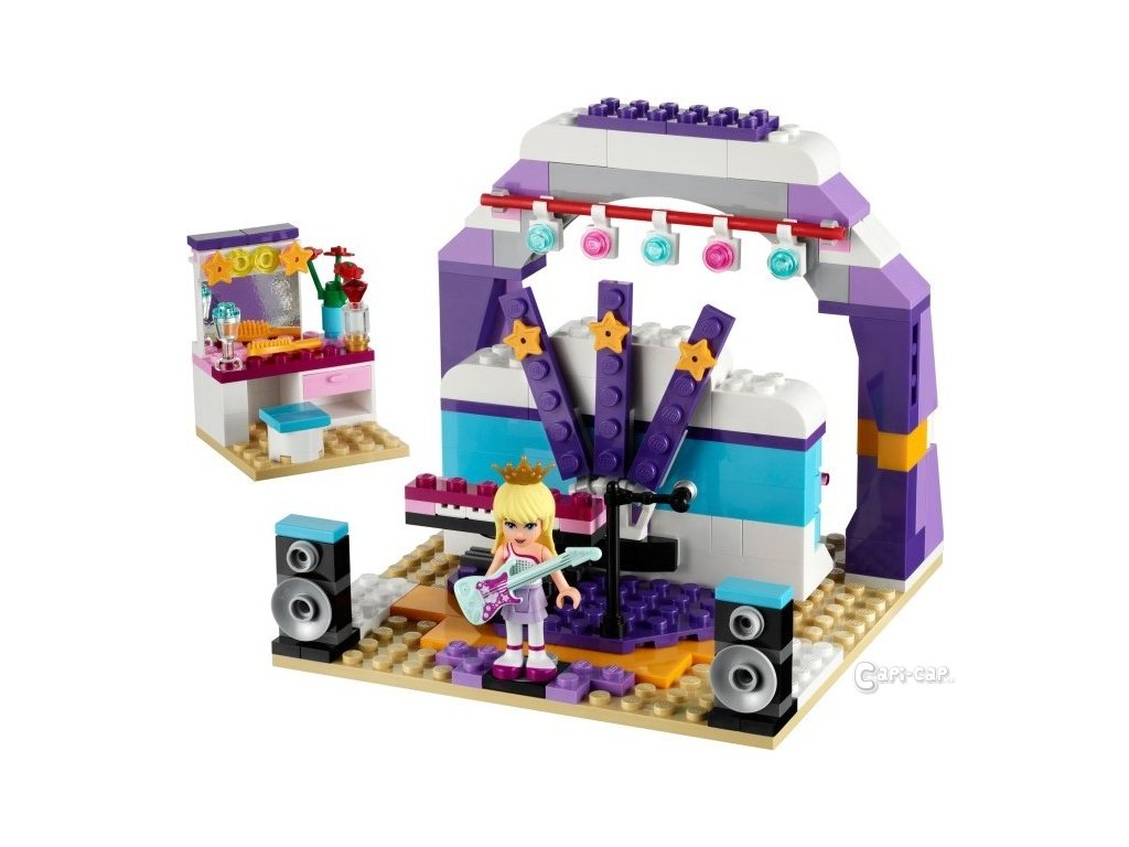 Stephanie má všetko čo potrebuje, aby sa pripravila na veľké predstavenie, v ktorom zažiari ako hviezda! Trénuj s ňou na vystúpenie pri baletnej tyči pred veľkým zrkadlom. Potom pódium otoč a objaví sa javisko s gitarou, klávesmi, repro debnami a mikrofónom. Skúšaj tak dlho, kým výkon Stephanie nie je perfektný a potom ju nalíč pri toaletnom stolíku! Privoň si k ružiam, ktoré jej prišli pred veľkým vystúpením, a nachystaj sa spolu so Stephaniou na predstavenie - máš k tomu ľadovú vodu, kefu a parfum. Akonáhle je všetko pripravené, namier svetlá reflektorov a spusti tú najlepšiu šou, ako mestečko Heartlake kedy zažilo! Obsahuje minifigúrku-bábiku Stephanie.Dodatočné parametre