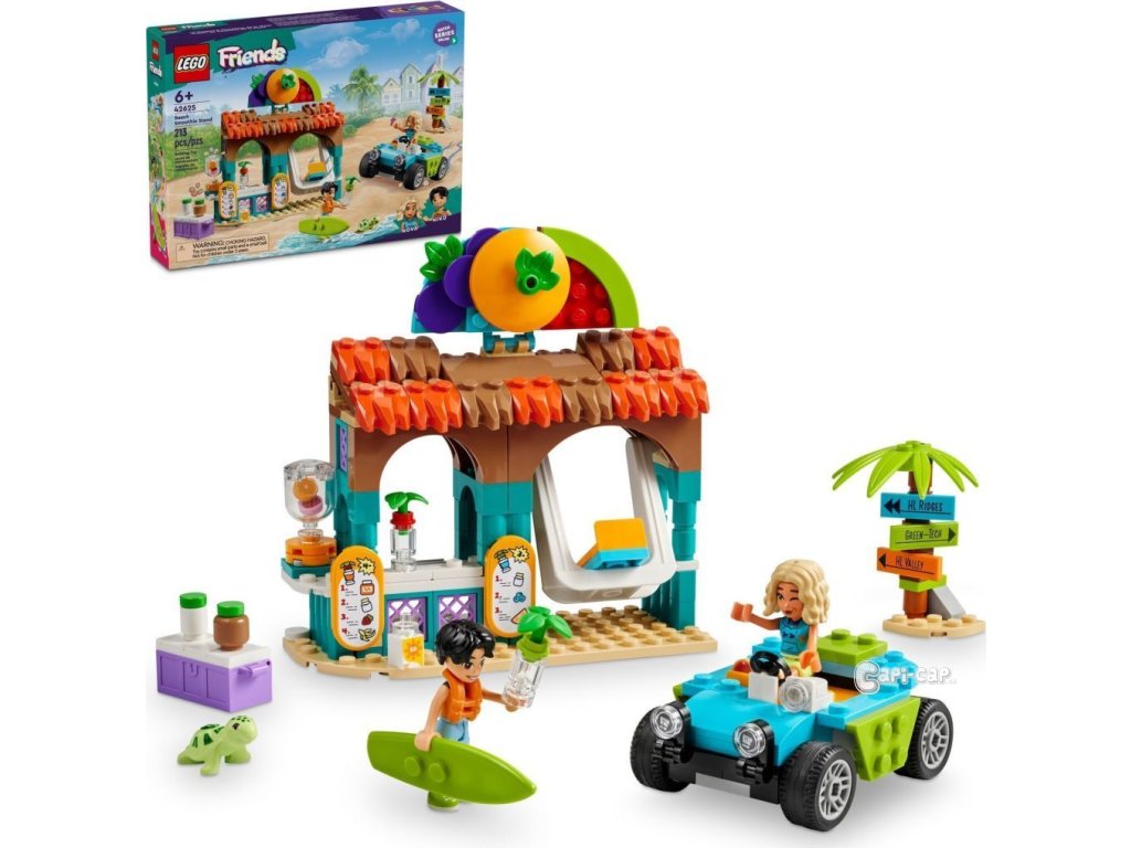 „Inspirujte děti ke kreativitě se stavebnicí LEGO® Friends (42625) Plážový stánek se smoothies pro děti od 6 let. Součástí stavebnice je model stánku se smoothies, plážová bugina a minipanenky LEGO Friends Nova a Niko. Děti zkombinují různé přísady, rozmixují je a vytvoří si smoothies různých příchutí. Povypráví příběh, ve kterém Nova s Nikem odpočívají s nápojem na houpačce a pak se vydávají prozkoumávat okolí v plážové bugině. Součástí této stavebnice LEGO je spousta doplňků, které podněcují kreativní hraní, včetně jídelního lístku, surfovacího prkna, záchranné vesty, autokamery a rozcestníku. Objevte další skvělé stavebnice (prodávají se samostatně) ze světa LEGO Friends plného příběhů s kamarády. Tato stavebnice je kompatibilní s aplikací LEGO Builder, která přináší intuitivní stavitelské dobrodružství. V ní mohou děti přibližovat a otáčet modely ve 3D, ukládat své stavebnice a sledovat svůj postup.“