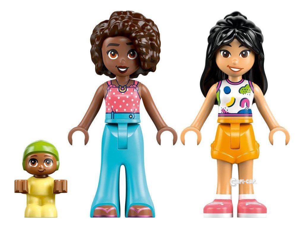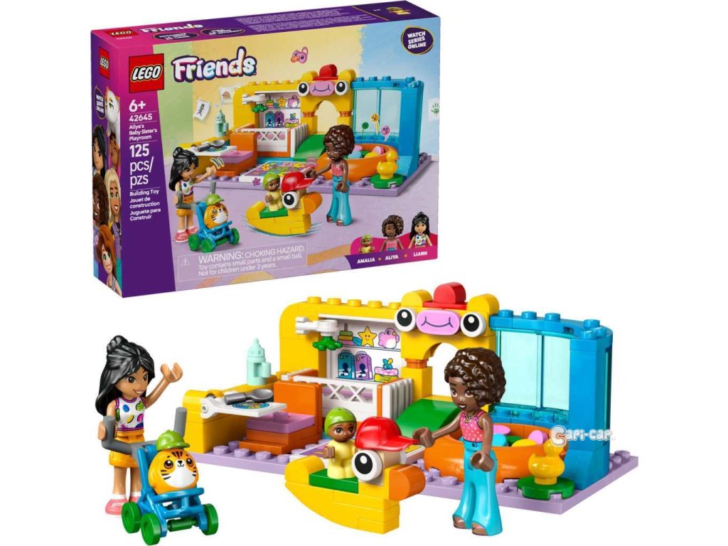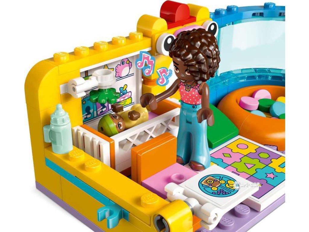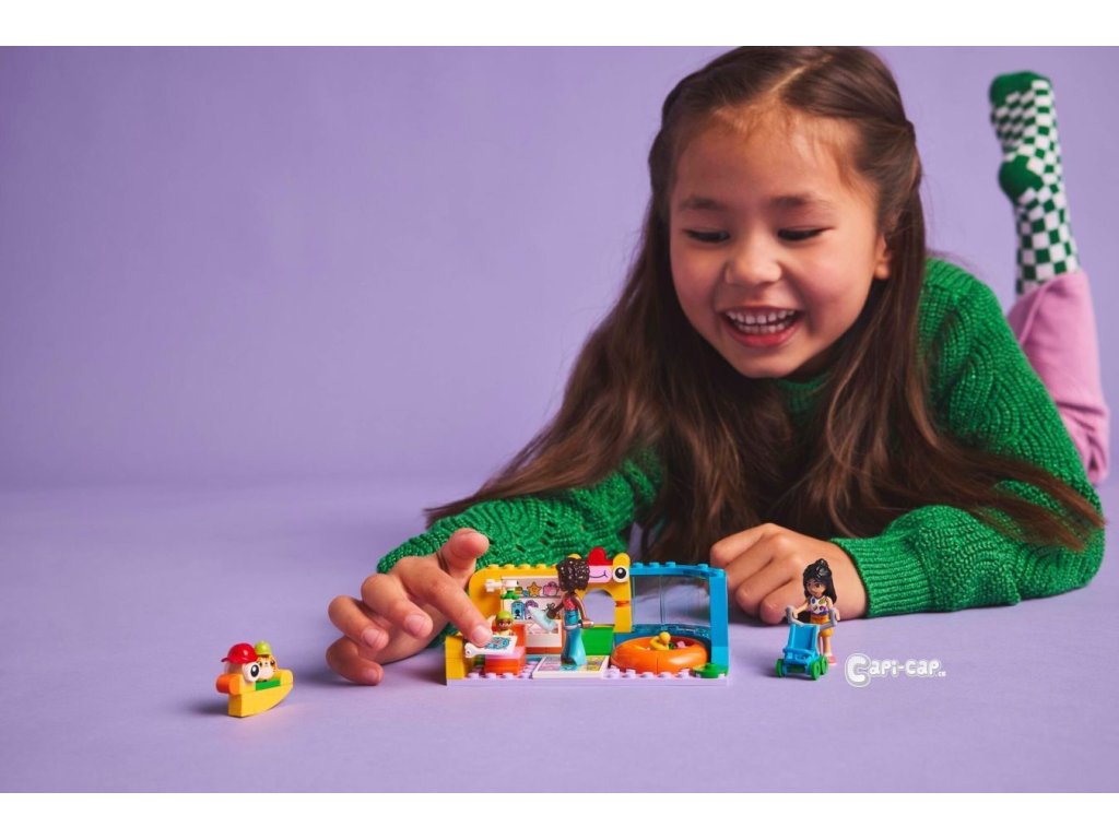 Inspirujte děti k tomu, aby postavily pokojíček, ve kterém se Aliya a Liann starají o Aliyinu malou sestřičku Amalii. Najdete tu všechno, co děti potřebují k vymýšlení příběhů o přátelství. Malou Amalii nakrmí u stolečku – díky chytré funkci převrácení uvidíte, jaký nepořádek takové miminko dokáže při jídle nadělat! Až bude čas na zdřímnutí, uložte Amalii do postýlky. Díky skluzavce, hrací podložce, bazénku s míčky, houpající se kačence a roztomilému plyšákovi ve stylu LEGO si miminko užije spoustu zábavy. Kamarádky pak vezmou Amalii na procházku v kočárku.
