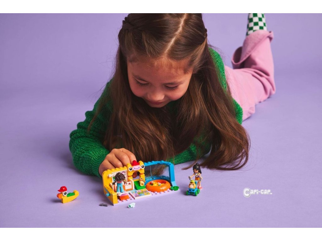 Spousta doplňků pro hranína postavy – Mezi doplňky najdete lahvičku, lžíci, bazének s míčky, houpačka v podobě kačenky, kočárek a plyšáka v podobě LEGO®