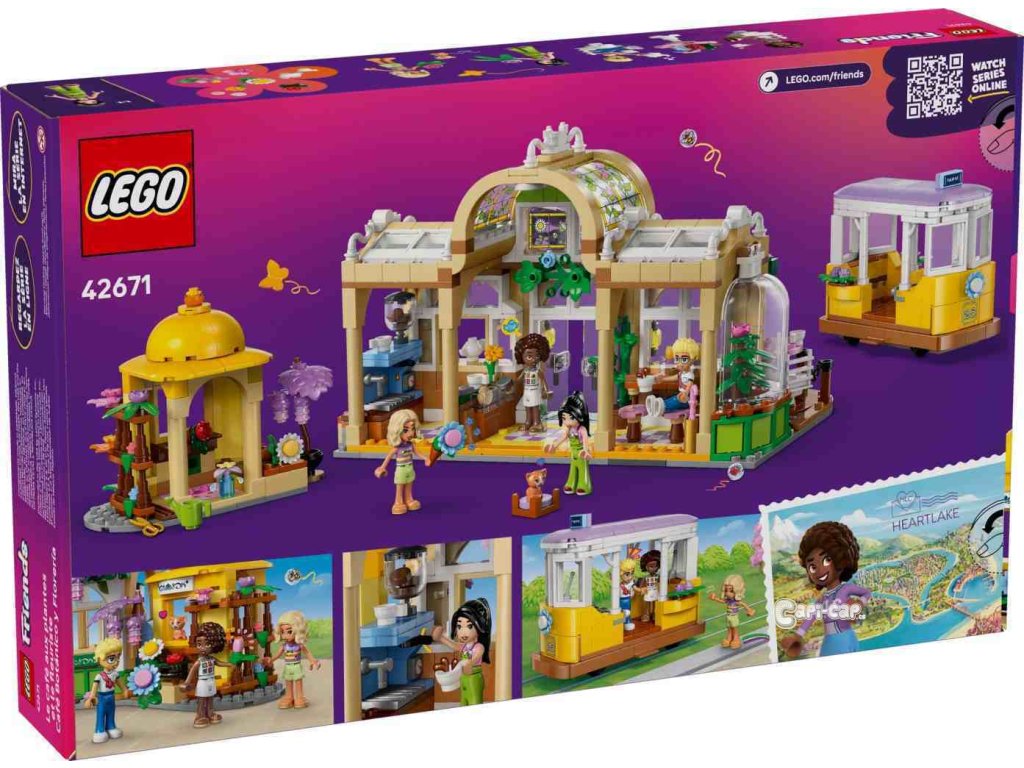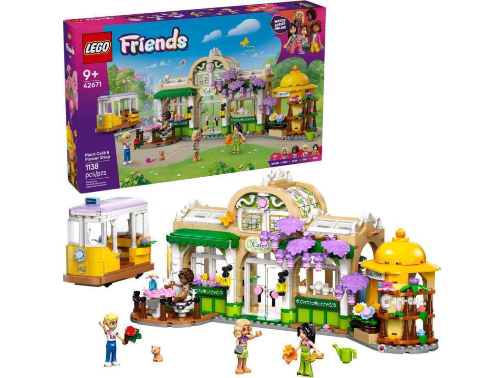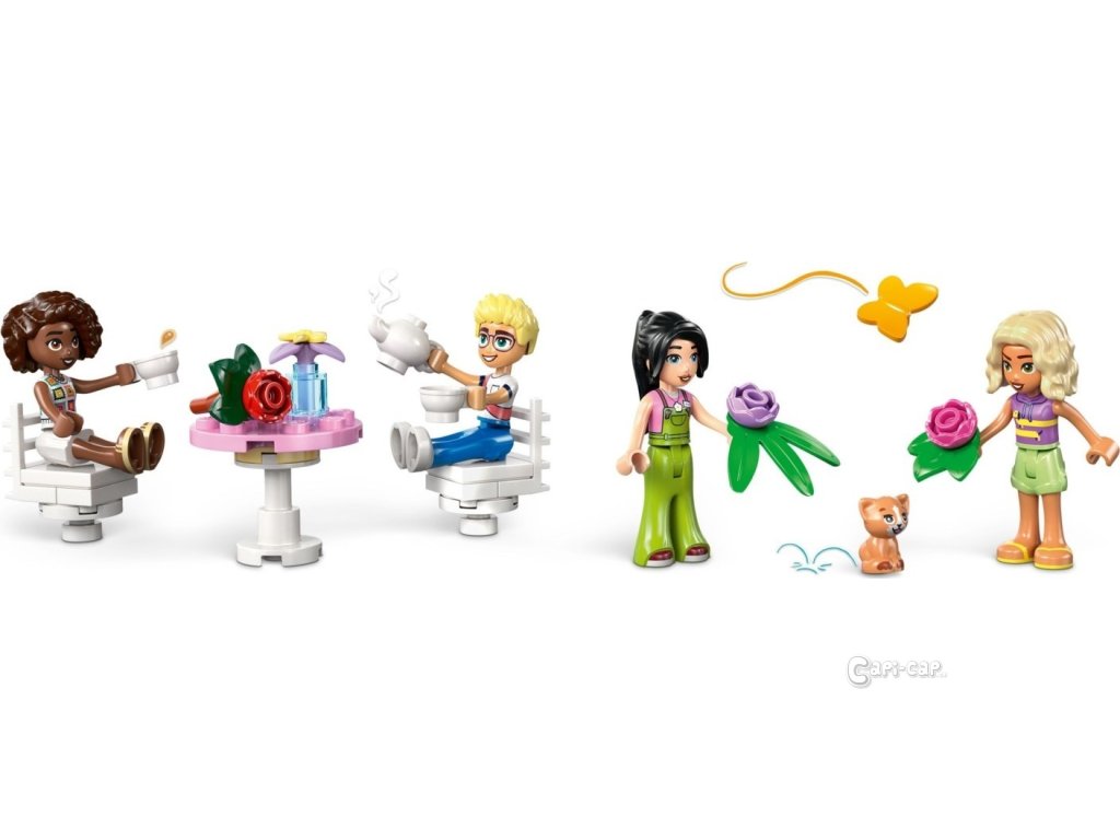 Ve stavebnici LEGO® Friends (42671) Kavárna plná rostlin a květinářství pro holky a kluky od 9 let se snoubí nádherné květiny s přátelstvím. Sada obsahuje 4 minipanenky, figurku kočky, tramvaj a spoustu doplňků pro nápadité hraní. Tato pestrobarevná stavebnice představuje kreativní dárek pro děti, které milují květiny a zábavné hračky, a bude se skvěle vyjímat na výstavce. Objevte řadu květin a rostlin v této stavebnici, která vypráví příběh Aliyi, Ollyho, Novy, Esmy a kocoura Nuggeta, kteří rádi tráví čas v květinářství a kavárně. Stavebnice je plná funkcí, které inspirují ke kreativnímu vyprávění. Součástí je roztomilá tramvaj, ve které se postavy můžou projet, a kavárna s venkovním posezením a kuchyňkou s kávovarem. Nechybí květinový stánek s kyticemi a rostlinami v květináčích. Až si děti dohrají, model si můžou vystavit na polici nebo na stole a každý den se kochat krásnou květinovou výstavkou.