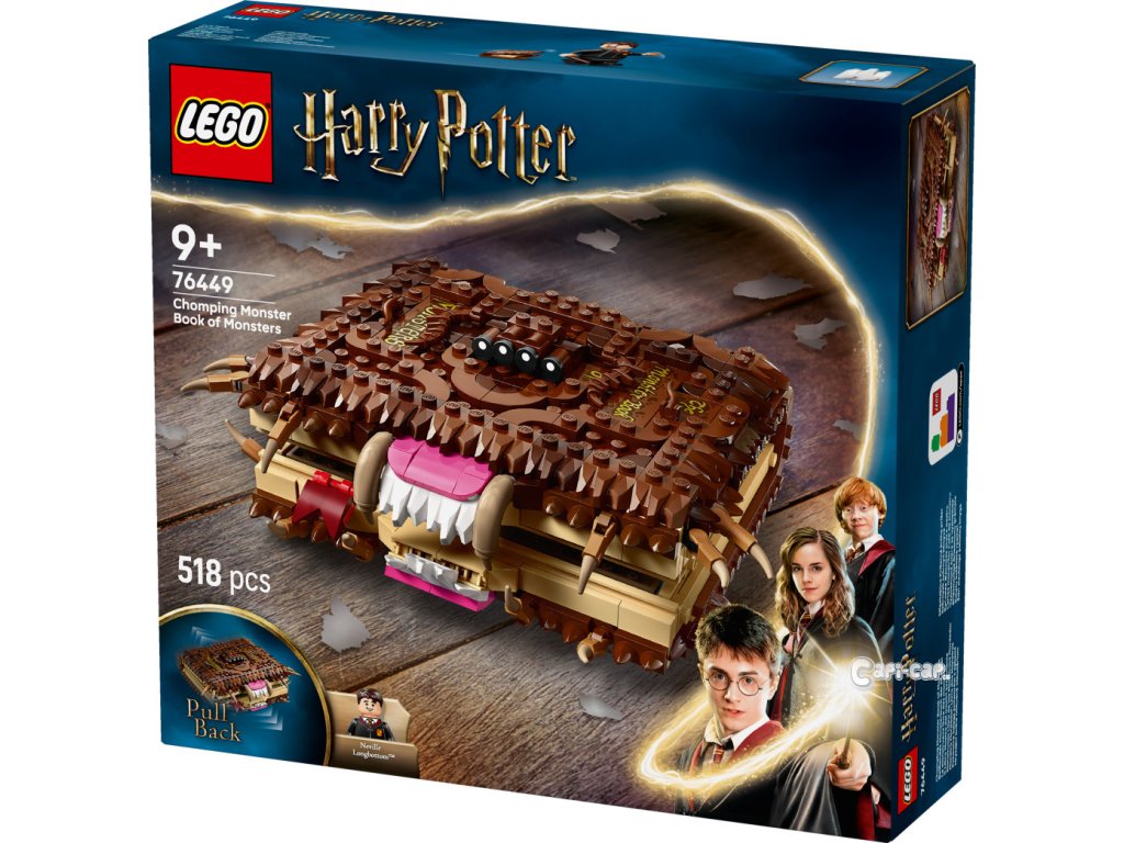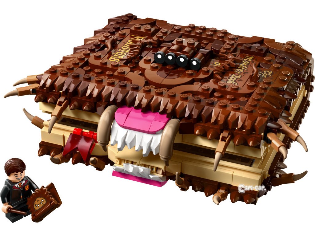 Tato zábavná fantasy stavebnice obsahuje propracovanou kostkovou repliku Obludného obludária, učebnice o péči o kouzelné tvory. Model má skrytá kola a natahovací funkci – knihu položte na rovnou plochu, natáhněte, pusťte ji a sledujte, jak se řítí pryč a při tom žvýká.