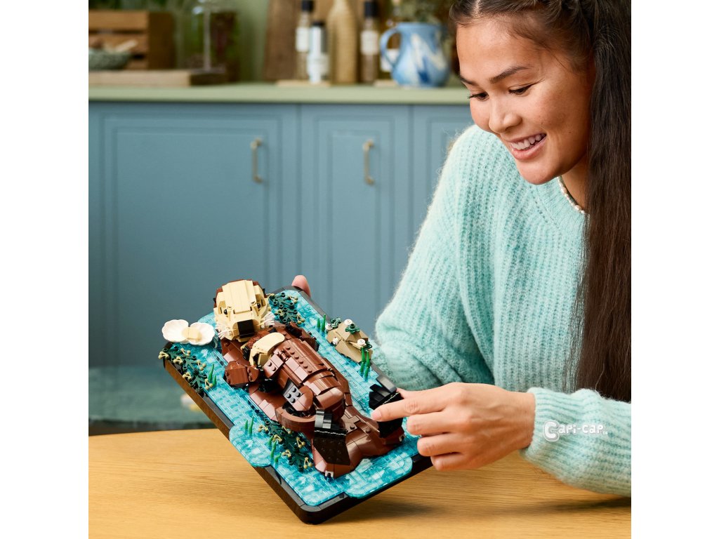 Vneste do své domácnosti obří dávku roztomilosti se stavebnicí LEGO® Ideas Plovoucí mořské vydry (21366) pro dospělé. Vytvořte roztomilý model z kostek, který znázorňuje vydří mámu s mládětem odpočívající ve vodě. Umístěte figurku vydřího mláďátka na bříško maminky a napolohujte její hlavu, ústa, ploutve a drápy. Připevněte k vydří mámě sestavitelnou mušli a proměňte model mořského zvířátka ve výstavní kousek. Původní návrh této stavebnice navrhnul a vytvořil fanoušek, a stejně tak byl zvolen fanoušky LEGO. Model představuje zábavnou a poutavou aktivitu pro dospělé, ať už se stavebnicemi LEGO teprve začínáte, nebo jste zkušeným stavitelem. Užijte si stavění modelu s aplikací LEGO Builder, která vám umožňuje přibližovat a otáčet model ve 3D a ukládat a sledovat postup stavění. Stavebnice představuje zábavný dárek pro milovníky zvířat a obsahuje 1 234 dílků.