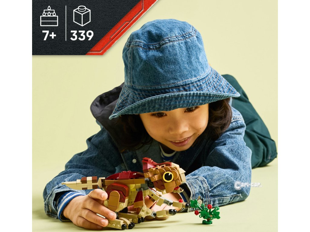 Děti a fanoušci od 7 let rozšíří svou sbírku dinosaurů a vydají se na dobrodružství se zábavnou stavebnicí LEGO® Jurassic World (76970) Dinosauří mládě Dolores: Aquilops. Tato výstavní stavebnice obsahuje figurku malého aquilopse z kostek a sestavitelnou rostlinu s květinami. Model mláděte Dolores má pohyblivou hlavu, ruce a nohy, díky kterým ji můžete libovolně napolohovat, a navíc pohyblivý ocas a otevírací čelist, kterou dává najevo potěšení, když si pochutná na rostlině. Jakmile hraní skončí, můžete si tento roztomilý model dinosaura umístit na polici nebo na stůl a pochlubit se jím. Tento dinosauří dárek pro děti je ideální na kreativní hraní a lze jej kombinovat s dalšími dárkovými stavebnicemi LEGO Jurassic World (prodávají se samostatně). Děti se můžou těšit na hodiny zábavy při přehrávání scének z filmu a vymýšlení vlastních dinosauřích dobrodružství ze světa Jurassic World. Stavebnice nabízí dětem obohacující zážitek ze stavění a inspiruje ke kreativnímu hraní. Stavebnice obsahuje 339 dílků.