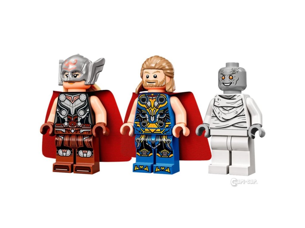 Potešte svoje malé superhrdinu vo veku od 7 rokov ohromujúcou stavebnicou LEGO® Marvel Útok na Nový Asgard (76207). Táto akčná stavebnica na motívy marvelovky Thor: Love and Thunder stavia hrdinov proti obávanému stvoreniu v rámci dobrodružstva, ktorým vdýchne život detská predstavivosť. Parádna stavebnica s monštrom Deti môžu s touto originálnou stavebnicou stáť proti nočnej more všetkých superhrdinov. Stavebnica obsahuje minifigúrky 3 obľúbených postáv: Gorra, ktorý vyvolá tieňové monštrum, Thora so sekerou Stormbreaker, a mocného Thora s kladivom Mjölnir. Vysoko sa týčiaci monštrum má pohyblivé ruky a klepetá, ktoré umožňujú väčšiu flexibilitu pri hraní a vystavovaní. A ak máte chuť zažiť ešte väčšiu porciu staviteľskej zábavy, v bezplatnej aplikácii LEGO s návodmi na stavanie nájdete intuitívne digitálne nástroje umožňujúce otáčanie a približovanie modelov.