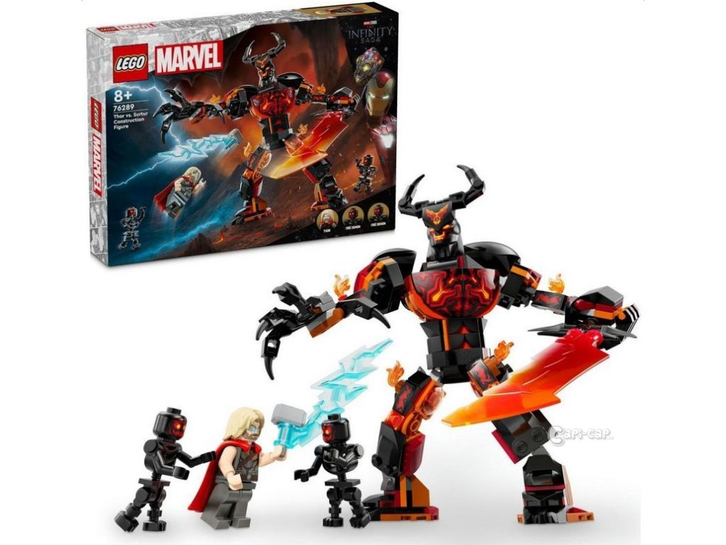 Superhrdinská stavebnice LEGO® Marvel (76289) Sestavitelná figurka: Thor vs. Surtur vychází ze scény z filmového hitu Thor: Ragnarok od studia Marvel. Díky kultovním postavám, vzrušujícím funkcím a nekonečným možnostem na nápaditá dobrodružství sesuperhrdiny představuje tato stavebnice LEGO Marvel skvělý dárek pro děti od 8 let. Stavebnice obsahuje 3 minifigurky: Thora a 2 bojovníky ohnivých démonů. Stejně jako ve filmu se Thor osvobodí z řetězů, které ho svazují, a bojuje se Surturem. Kloubovo u sestavitelnou figurku Surtura lze polohovat do různých akčních pozic. Třímá velký ohnivý meč a na hlavě má rohatou korunu. Díky průhlednému konektoru si děti mohou minifigurku Thora připevnit k sestavitelnému Surturovi, takže to vypadá, jako by Avenger létal. Pro doplňkovou digitální zábavu mohou stavitelé přibližovat a otáčet modely ve 3D a sledovat svůj pokrok pomocí intuitivní aplikace LEGO Builder. Stavebnice pro děti Avengers: Thor vs. Surtur – Minifigurka superhrdiny bojuje s obří sestavitelnou figurkou s plamenným mečem v této stavebnici LEGO® Marvel pro kluky a holky od 8 let Sestavitelná postava od Marvelu – obsahuje minifigurku Thora a 2 minifigurky ohnivých démonů, a navíc sestavitelnou velkou kloubovou figurku Surtura s ohnivým mečem a rohatou korunou na hlavě Superhrdinská stavebnice Avengers – Děti si přehrávají bojovou scénu z filmového hitu Thor: Ragnarok od Marvel Studiosa vydávají se na vlastní nápaditá dobrodružství Všestranný model LEGO® Marvel – Obsahuje průhledný konektor, který lze mimo jiné připojit k Thorovi a napodobit tak létání, což inspiruje k nekonečným a nápaditým možnostem hraní Dárek Avengers: Thor pro děti – Potěšte fanoušky Marvelu, Avengers, Thora a sestavitelných akčních hraček tímto akcí nabitým superhrdinským dárkem 3D průvodce stavěním – Děti si mohou stáhnout aplikaci LEGO® Builder a vychutnat si pohlcující stavitelský zážitek s digitálními funkcemi přibližování a otáčení modelů ve 3D a možností ukládání stavebnic a zobrazení postupu ve stavění Další stavebnice LEGO® Marvel – Rozsáhlá řada stavebnic LEGO Marvel dává dětem do rukou neustále se měnící svět nápaditých superhrdinských dobrodružství Velká stavitelská akce – Tato všestranná stavebnice s 245 dílky a sestavitelnou figurkou Surtura, která ve stoje měří přes 18 cm, dává dětem do rukou epická superhrdinská dobrodružství