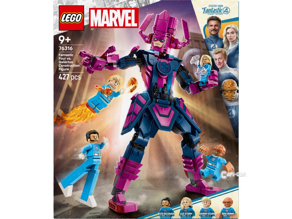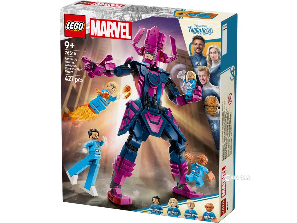 Fanoušci filmu Fantastická čtyřka: První kroky od studia Marvel si zinscenují akční momenty z filmu se stavebnicí LEGO® ǀ Marvel (76316) Fantastická čtyřka vs. sestavitelná figurka Galactuse, vůbec první stavebnicí LEGO s Fantastickou čtyřkou! Tato hravá stavebnice LEGO ǀ Marvel poslouží jako působivý dárek pro kluky a holky od 9 let, kteří milují superhrdinská dobrodružství. Tato stavebnice LEGO ǀ Marvel Fantastická čtyřka obsahuje 4 minifigurky: Součástí je Mr. Fantastic s výsuvnýma nohama, Human Torch se 2 ručními blastery, dílky v podobě plamenů připevněných k nohám a průhlednou podpěrou, která mu umožňuje „létat“, Invisible Woman se 2 silovými štíty a Thing s velkýma a mocnýma rukama. Plně pohyblivá figurka ikonického filmového padoucha Galactuse měří přes 28 cm na výšku. Tato pohyblivá figurka nastartuje nekonečné akční souboje se superhrdiny. Pro ještě větší digitální zábavu si stavitelé můžou přibližovat a otáčet modely ve 3D a sledovat svůj pokrok pomocí zábavné a intuitivní aplikace LEGO Builder. Model obsahuje 427 dílků.