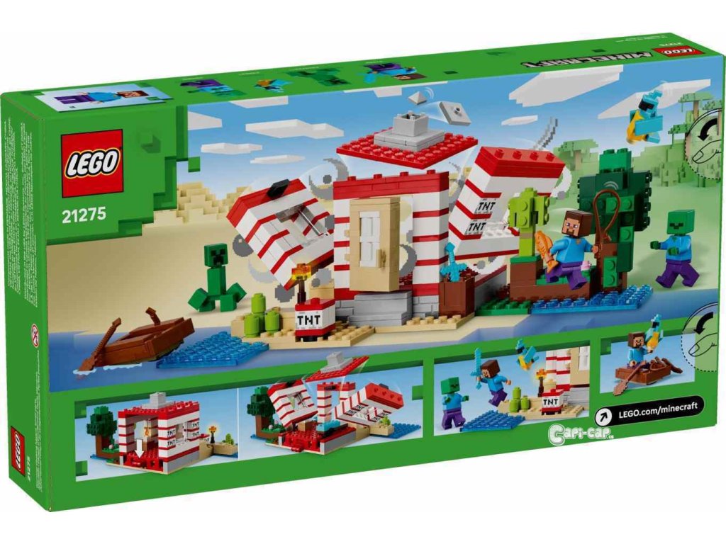 Dopřejte hráčům a fanouškům Minecraftu výbušnou odměnu s touto zábavnou kreativní hračkou. Stavebnice TNT dům v džungli (21275) představuje skvělý videoherní dárek pro děti od 8 let, které milují dobrodružné hračky, dekorace s motivem videoher, akční hraní a dobrodružství ve světě Minecraft®. Sestavitelný dům se nachází v biomu džungle v Minecraftu a vypadá jako velká verze ikonického TNT ve hře. Spínač na boku umožňuje dětem aktivovat funkci výbuchu TNT, která vyhodí do povětří celý dům. Až se usadí prach, děti můžou dům znovu postavit, aby se připravily na další dobrodružství. Minifigurky Stevea, Creepera a zombie inspirují ke kreativnímu hraní a akčním bitvám. Mezi autentickými doplňky LEGO Minecraft najdete loď, rybářský prut, rybu, papouška a listí z džungle. Aplikace LEGO® Builder dětem přináší ještě větší porci zábavy díky funkci přibližování a otáčení modelů ve 3D. Stavebnice obsahuje 287 dílků.