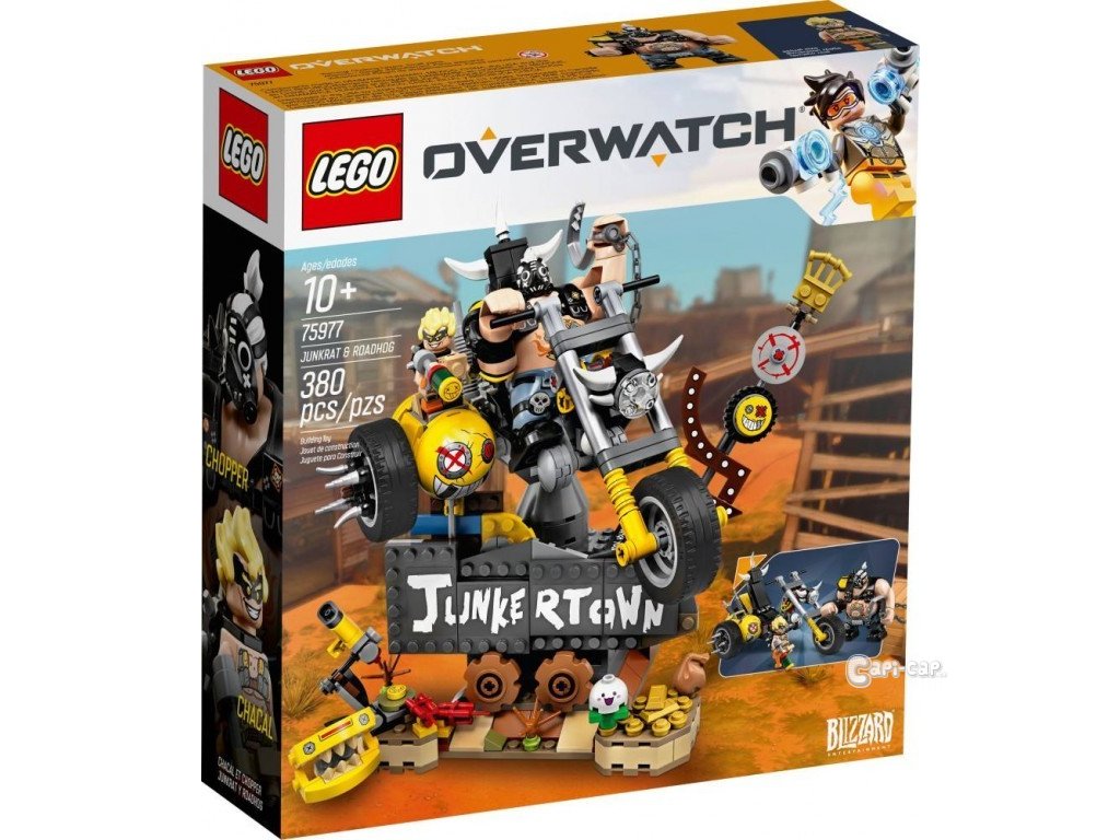 Táto stavebnica inšpirovaná medzinárodne uznávanou tímovou akčnou hrou Overwatch verne zobrazuje apokalyptickú atmosféru mesta Junkertown, obľúbenej mapy z hry. V sade nájdeš ikonické duo zločincov z Overwatch: Roadhoga a Junkrata. Veľká a prepracovaná figúrka Roadhoga je vybavená reťazou s hákom a jeho zbraňou. Minifigúrka Junkrata má svoju ikonickú drevenú nohu a výzbroj. Fanúšikovia aj deti si zamilujú autentické detaily, žltú motorku a diorámu mesta Junkertown.