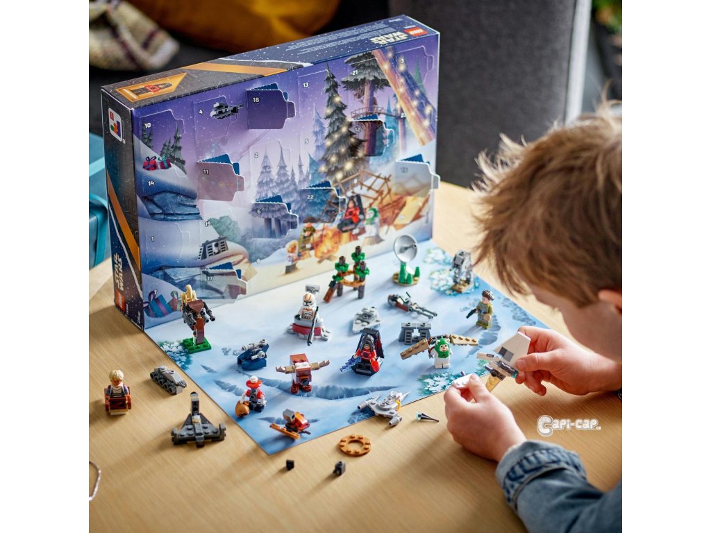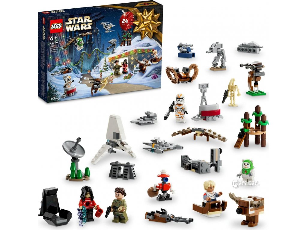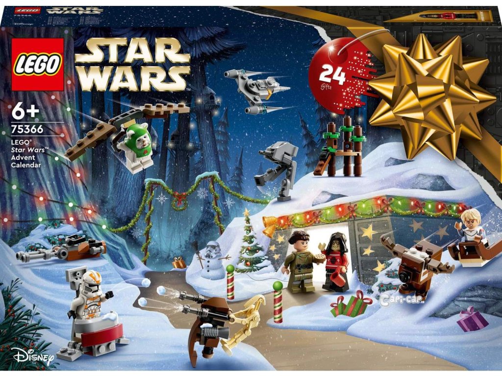• Adventní kalendář LEGO® Star Wars™ 2023 (75366) – Nechte se pohltit vánoční atmosférou s adventním kalendářem, ve kterém najdete postavy ze Star Wars, mini modely vozidel a doplňky • 9 postav – Obsahuje císaře Palpatina, Ewoka a Pit Droida ve vánočním oblečení, Gonk droida převlečeného za soba, Omegu se sáňkami, klonovaného vojáka z 212. legie, bitevního droida B-1 a princeznu Leiu • 10 mini strojů – Justifier, Mandalorianova stíhačka N-1, turbo tank, STAP spídr, AAT, imperiální raketoplán, AT-ST, spídrová motorka, imperiální hvězdný destruktor a kluzák Ewoků • 5 dalších mini modelů – Velitelská stanice klonů, vesnice Ewoků, bunkr na Endoru, endorský štítový ochránce a císařův trůn • Kreativní zábava – Obsahuje postavy a stavebnice z příběhů Star Wars: Návrat Jediho, Star Wars: Klonové války, Star Wars: Vadná várka a lze je kombinovat s dalšími stavebnicemi z řady LEGO® Star Wars™ • Tip na dárek pro děti od 6 let – Darujte dětem k Vánocům Adventní kalendář LEGO® Star Wars™ čítající 320 dílků • Zábavné stavebnice pro všechny věkové kategorie – Stavebnice od LEGO® Star Wars™ umožňují dětem a dospělým fanouškům této ságy připomenout si kultovní scény, přehrávat si vlastní kreativní příběhy nebo si jednoduše vystavovat modely z kostek • Prémiová kvalita – Kostky LEGO® splňují přísné standardy kvality, takže umožňují jednoduché a bezpečné spojování • Bezpečnost na prvním místě – Dílky LEGO® pouštíme na zem, drtíme, kroutíme, zahříváme a pečlivě analyzujeme, abychom zajistili, že splňují náročné globální bezpečnostní normy.