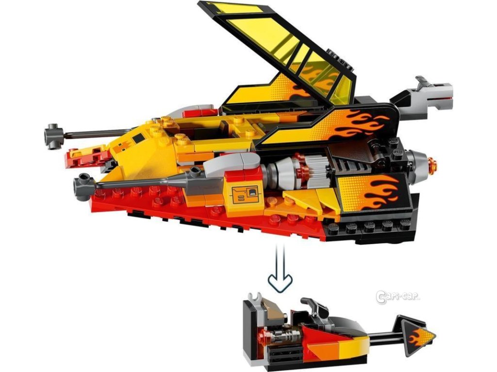 2 vozidla LEGO® Star Wars™ v 1 – Sněžný spídr Force Burner má potisk s plameny, otevírací dvojitý kokpit se skrytou odnímatelnou spídrovou motorkou a zadní vystřelovač