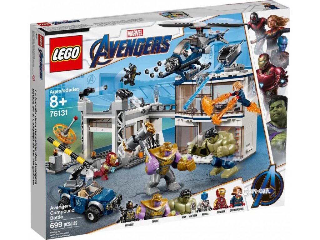 Hraj sa na napínavú bitku o základňu Avengerov 76131 a poraz Thanosa a Outridera v tejto stavebnici od LEGO® Marvel Avengers! Základňa Avengerov obsahuje dvojposchodovú kancelársku budovu so zasadacou miestnosťou vrátane stola s tajnou priehradkou na zbraň, otváracieho „laserového“ trezoru, heliportu, garáže, strešného pružinového vystreľovača a duálneho vystreľovača, a navyše je vybavená aj rotujúcim, sklop. Táto bezchybná stavebnica obsahuje aj zostaviteľný vrtuľník s nastaviteľnými, otáčacími rotormi a rýchlym vystreľovačom na 6 striel a džíp s rotujúcou vežou s dvojitým vystreľovačom. Prehrávaj si napínavé scény z filmov Marvel Avengers so 4 minifigúrkami, mikrofigúrkou Ant-Mana a veľkými pohyblivými figúrkami Hulka a Thanosa.