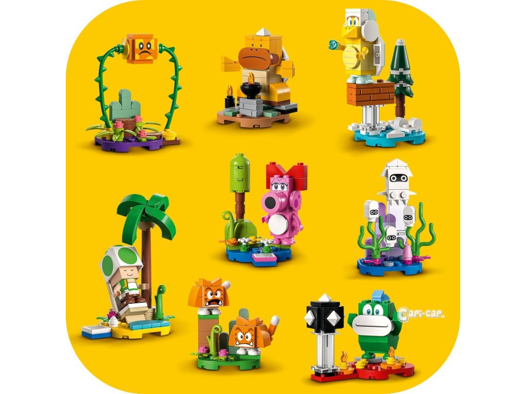 • Sběratelské postavy LEGO® Super Mario™ – Rozšiřte dětem herní možnosti s interaktivními figurkami ze 6. série (71413). Každé balení obsahuje náhodnou sestavitelnou postavičku s akčním prvkem • 8 sběratelských postav, které lze postavit a hrát si s nimi – Birdo, Zelený Toad, Ledový Bro, Bramball, 2 Kočičí Goombové v 1, Blooper (se 3 malými Bloopery), Sumo Bro a Spike • Rozšiřte startovací set – Pro interaktivní herní zážitek je potřeba vlastnit některý ze startovacích setů s figurkou LEGO® Maria (71360), LEGO® Luigiho (71387) nebo LEGO® Peach™ (71403) • Malý model v každém balení – Děti mohou modely použít jako podstavce na vystavení postaviček nebo je zakomponovat do svých úrovní. Podívejte se, jak budou LEGO® Mario™, LEGO® Luigi™ a LEGO® Peach™ na postavy reagovat • Dárek pro každou příležitost pro děti od 7 let – Darujte dětem akční kostky LEGO® Super Mario™ jako drobnou odměnu, narozeninový dárek nebo pod vánoční stromeček • Stavějte jedinečné úrovně – Zapojte tyto postavy do hraní se startovacím setem nebo rozšiřujícími sety LEGO® Super Mario™ a prožívejte nová dobrodružství – sami nebo s kamarády • Tištěný i digitální návod na stavění – Návod naleznete v každém balíčku i v doprovodné aplikaci LEGO® Super Mario™. Seznam kompatibilních zařízení s operačním systémem Android a iOS najdete na stránce LEGO.com/devicecheck • Neomezené možnosti – Sety LEGO® Super Mario™ jedinečným způsobem oživují oblíbené postavy a nabízejí neomezené kreativní možnosti v podobě rozšiřování a přestavování • Prémiová kvalita – Kostky LEGO® splňují náročné oborové standardy, takže umožňují jednoduché a pevné spojování robustních modelů • Bezpečnost na prvním místě – Dílky LEGO® testujeme téměř všemi představitelnými způsoby, abychom zajistili, že vyhovují náročným celosvětově uznávaným bezpečnostním normám
