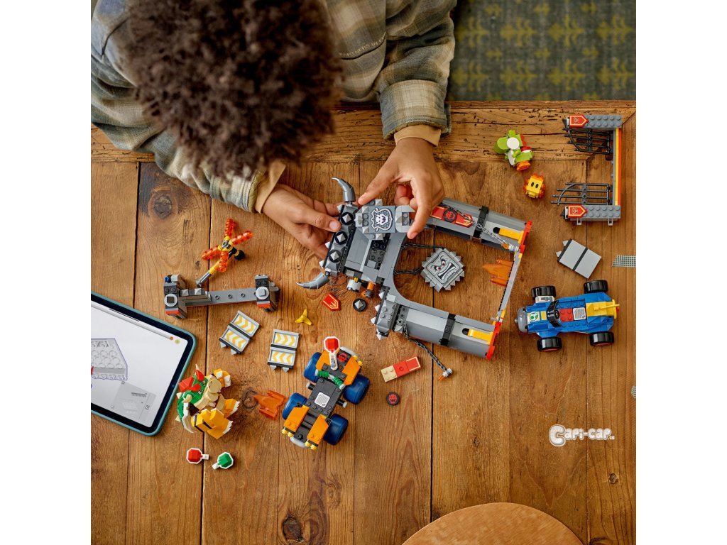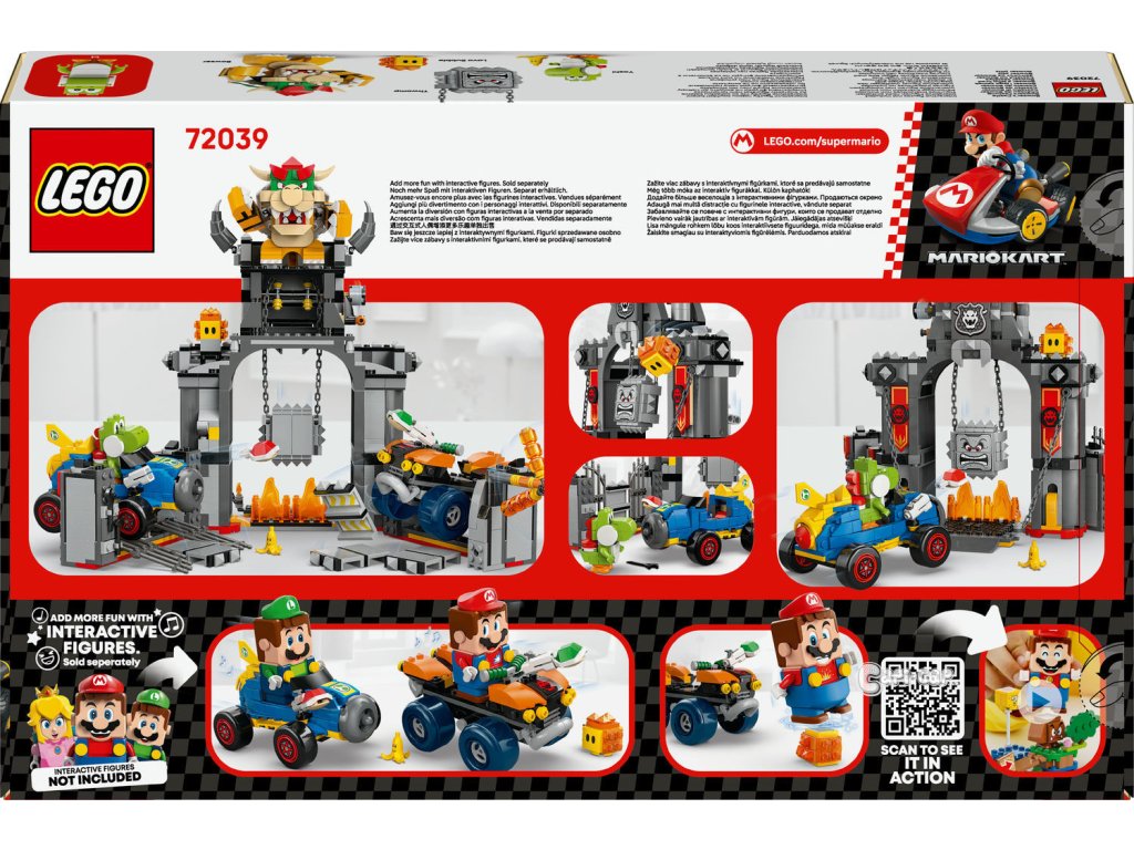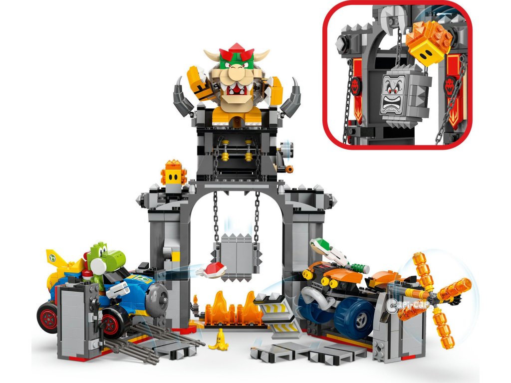 Bowserův hrad – Pořádejte závody Bowsera proti Yoshimu, prorážejte hradby a vyhýbejte se padajícímu Thwompovi s tímto setem LEGO® Super Mario™: Mario Kart™ pro děti