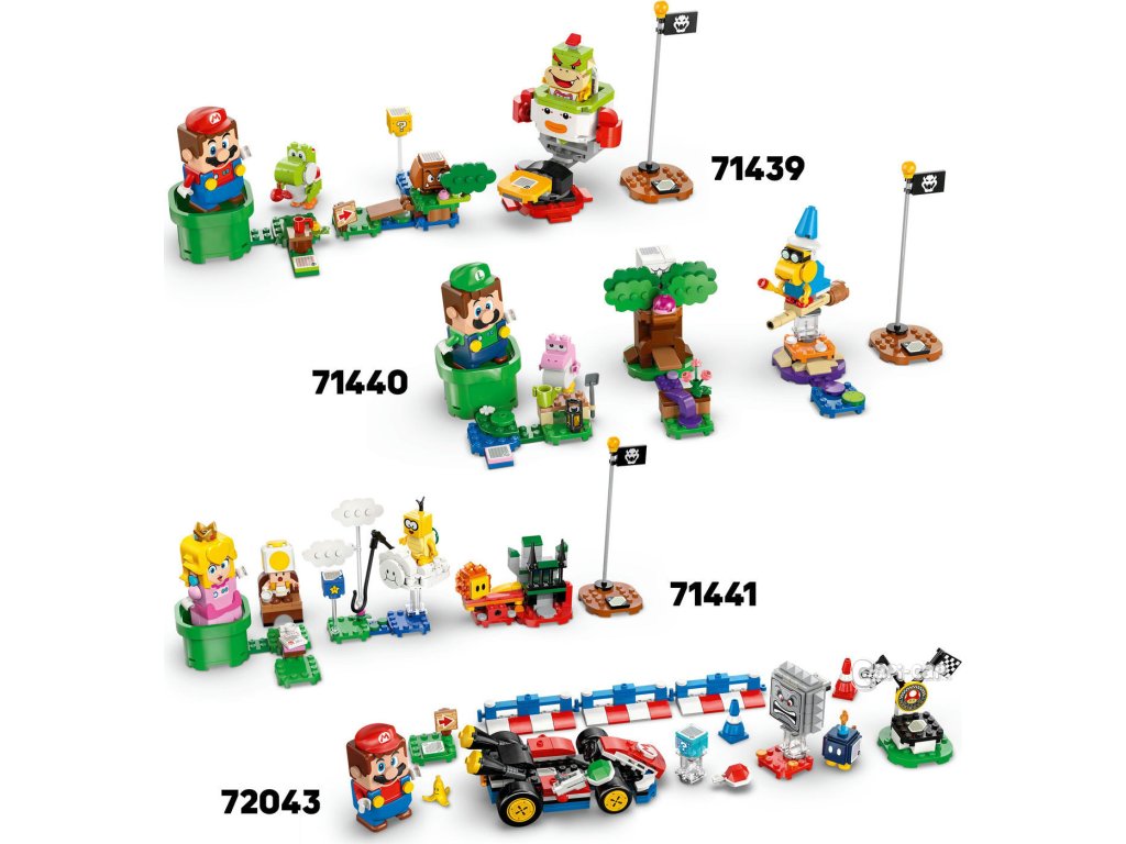 Nekonečné herní možnosti – Prozkoumejte celou řadu stavebnic LEGO® Super Mario™: Mario Kart™ (prodávají se samostatně) a objevte další sestavitelná vozidla Mario Kart a postavy, se kterými můžete závodit