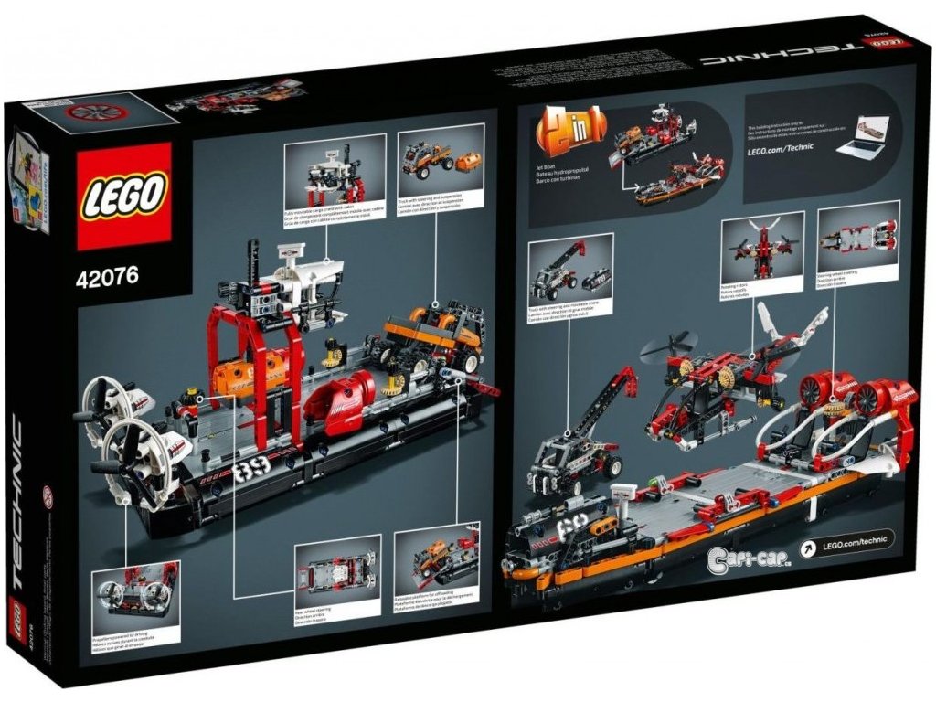 Dostaň sa do všetkých nehostinných oblastí s týmto Vznášadlom od LEGO® Technic, ktoré skvele kombinuje čiernu a bielu farbu, a má funkčný žeriav s kabínou a zdvíhaciu nákladnú plošinu. Manévruj sa vznášadlom, roztoč obe zadné vrtule a pomocou funkčného riadenia ovládaj ich pohyb vľavo a vpravo. Tento pokročilý model obsahuje aj expedičný nákladiak so snímateľným nákladným kontajnerom. Prestav Vznášadlo na tryskový čln.